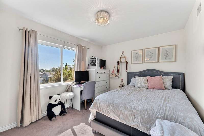 Beautiful Two-Story Home with Mountain Views Welcome to this inviting two-story home featuring a double-door entry and a two-car garage with direct access to the home, plus a pedestrian door leading to the backyard. A covered front porch creates a warm and welcoming entry. The open floor plan offers a functional layout with the staircase and kitchen located just off the entry. The kitchen overlooks the dining area and offers the possibility for expansion. The dining room features sliding glass doors leading to the backyard. The spacious living room includes a brick fireplace and additional sliding door access to the backyard. The backyard features a large covered patio, mature landscaping, and a slight mountain view — perfect for outdoor entertaining. This home includes one downstairs bedroom with access to a bathroom featuring a stall shower. Upstairs, the primary bedroom offers an ensuite bath, walk-in closet, and peek-a-boo mountain views. Two additional secondary bedrooms and a hallway linen closet complete the second level. Convenient direct garage access, a great floor plan, and an expansive backyard make this home an excellent opportunity for comfortable living and future customization.