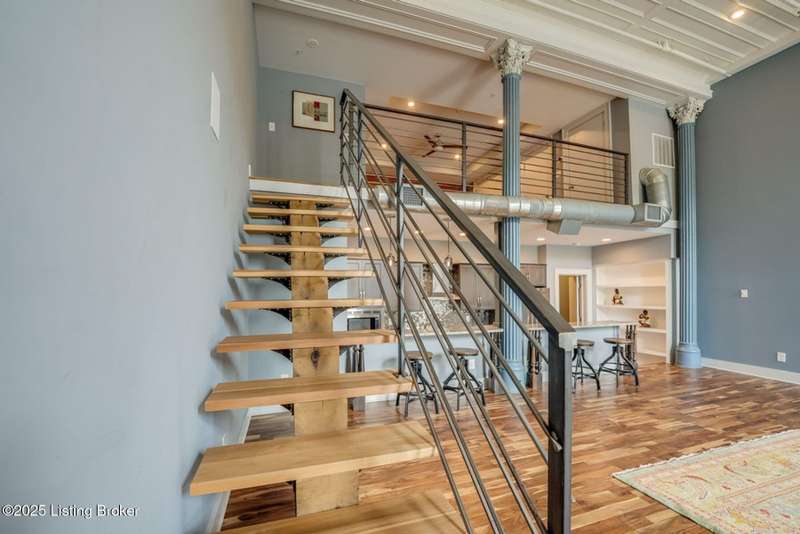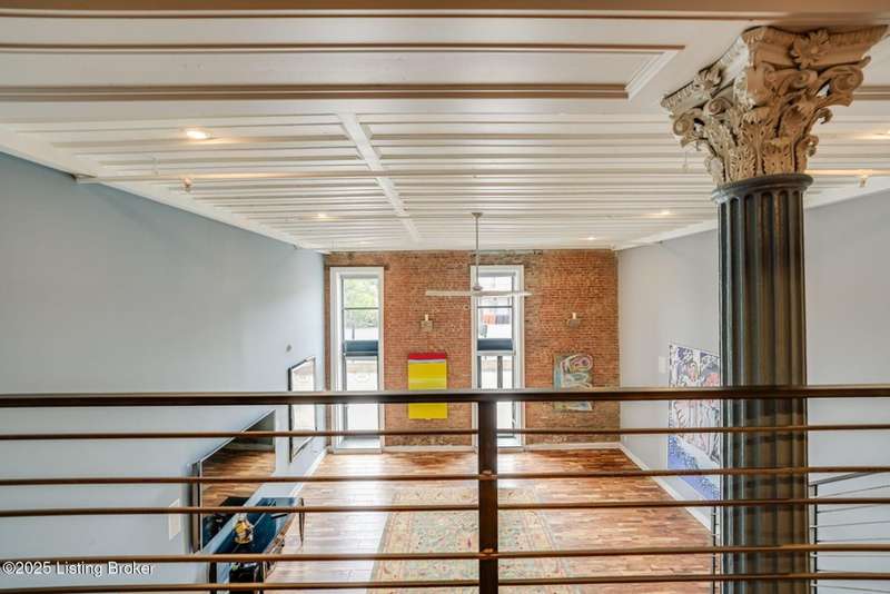 Incredible loft in the heart of the East Market District, built in the 1840s and once home to the Bacon & Sons Dry Goods store. Soaring 18-foot columns rise from the main level to the upper floor (crafted from the building's original supports and thoughtfully preserved). The open concept main living area flows into a well appointed kitchen featuring stainless steel appliances, a gas range, granite countertops, and generous cabinet space. Wood floors run throughout the home, adding warmth and depth. The first floor bedroom offers a walk in closet and an en suite bath with a tub and shower combo. Upstairs, the primary suite includes surround sound integration and a dual vanity with granite countertops. The staircase itself was custom cut from one of the original beams of the building. Close proximity to top dining, Nulu, shops, galleries, Slugger Field, Lynn Family Stadium, and Whiskey Row, this is a great opportunity to own a piece of history in one of the city's fastest-growing neighborhoods.