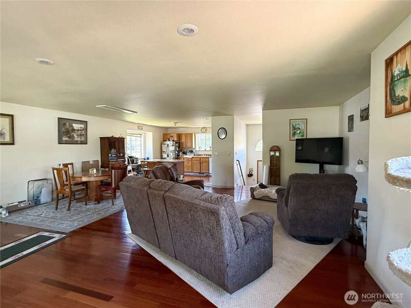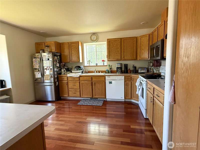 Immaculate and full of charm! This home features new hardwood floors, an open floor plan, expanded living area, and vinyl windows. Enjoy seamless indoor-outdoor living with a covered deck off the dining/living area. Upstairs offers 3 bedrooms, including a primary suite with private bath. Set on over 1 acre, the property includes a greenhouse, fenced garden, potting shed with loft, chicken coop (or dog run), and mature landscaping. Don’t miss the 40x40 shop with 3 bays and a full workshop!