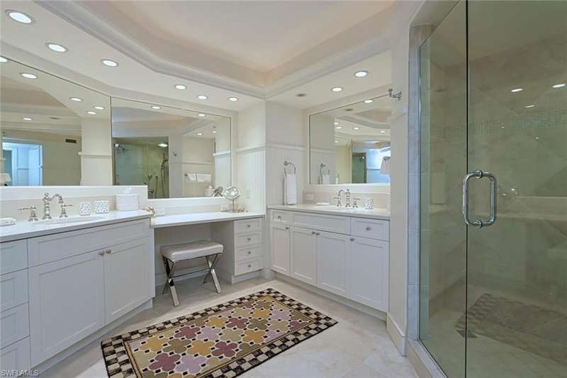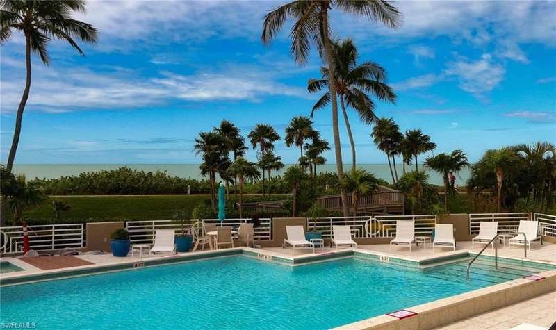 A place where picturesque sunsets, marine wildlife, and breathtaking views of the Gulf of Mexico are an everyday luxury. The gorgeous floor-to-ceiling windows provide you and your guests with unsurpassed, southern, western, and northern, panoramic views of the Gulf of Mexico and its’ white, sandy beach. Decorated with a crisp décor, this 2 bedroom, Den, 3 bath, with travertine tile throughout, offers 2000’ of interior living space, 2200’ total area, including the two screened lanais. Rarely does an “04” unit ( largest floorplan) come on to the market. As you enter this residence, you are surrounded by views of the gulf, and will appreciate the open floor-plan. The living room has a cream-upholstered L-shaped couch, side chair in a celery green upholstery, entertainment center with TV, accompany tables/lamps, lovely artwork, and touches of “Mackenzie Child’s” ceramics. The dining area has a rectangular table and seating for 6, offering views of the gulf. The well-inventoried kitchen offers all-white cabinetry, quartz counters and backsplash, butcher-block island, eat-in table, and looks out to the beach/gulf. The Primary suite offers a king-size bed, matching end tables/lamps, dresser, side chaise, TV, walk-in closet, private bath with a walk-in shower, dual vanities, and you will enjoy the stunning views, and direct access to the lanai. The first guest suite has a queen-size bed, with matching end tables, lamps, dresser, closet, views of the beach and gulf, and private bath with a shower. The Den is the 2nd guest area, offering a pull-out queen couch, desk area for 2, access to the lanai, and private bath with a shower. The lanai has a table and seating for 4 for dining; second lanai offers a conversation area, with 4 comfortable wicker chairs and table. The outdoor pool/spa and lanai area of the building has plenty of seating, umbrellas, gas grill area, and more. This condominium has everything you will need to enjoy your time in Naples. The Vistas offers wonderful amenities including 24-hour front desk attendant, guest suites to rent, fitness center, enclosed spa, saunas, steam room, social rooms, card room, extra storage, garage parking and renovated pool/spa deck with inspiring Gulf views. A short boardwalk will take you from the pool deck to the white sand beach. An easy walk to the Venetian Village shops and restaurants.