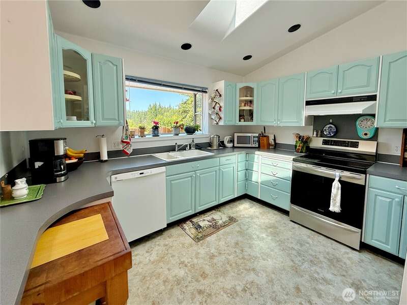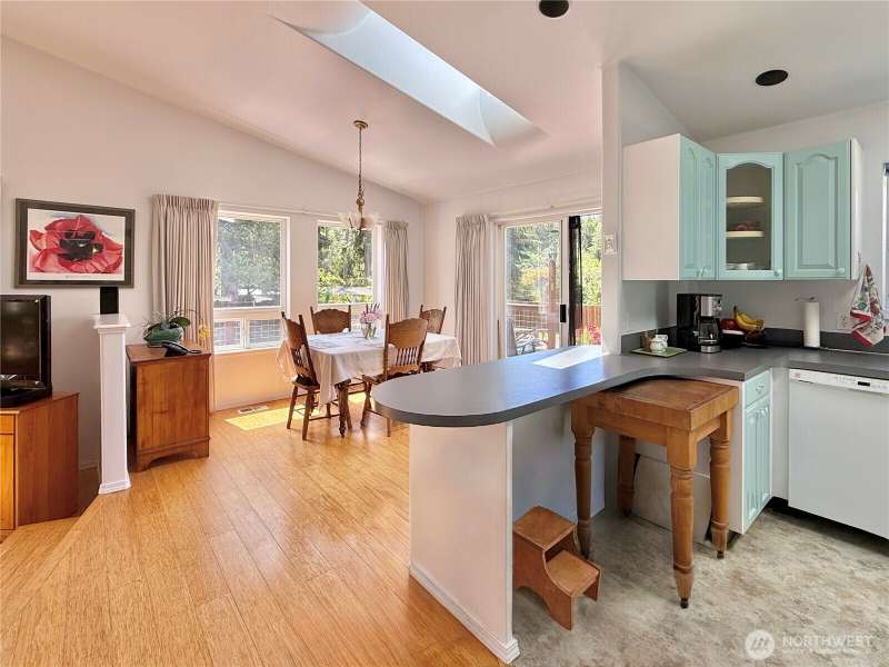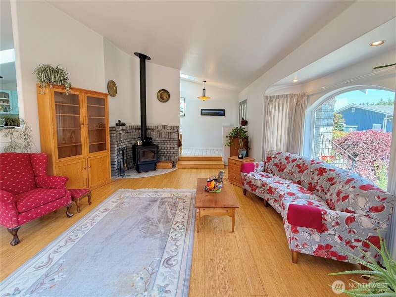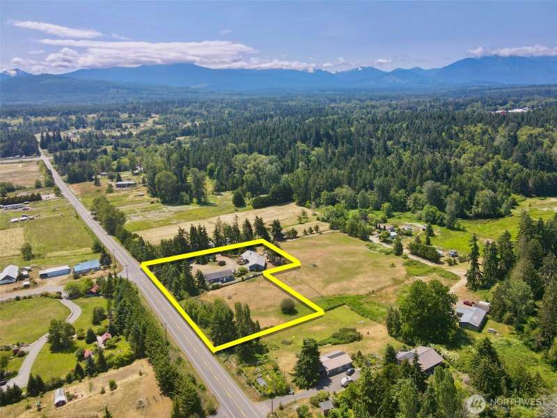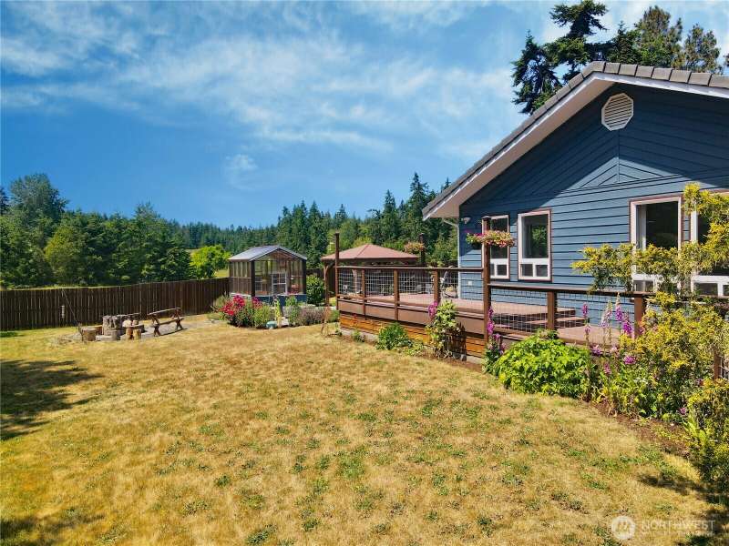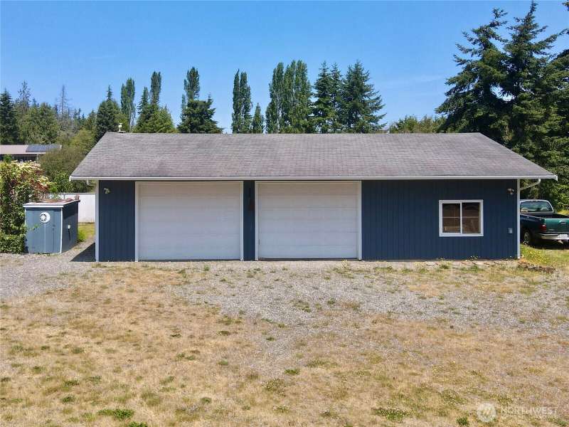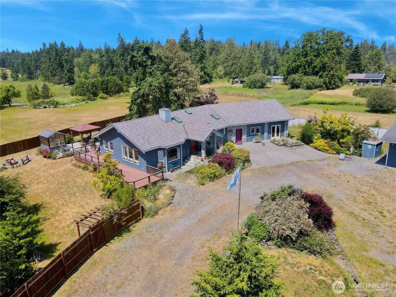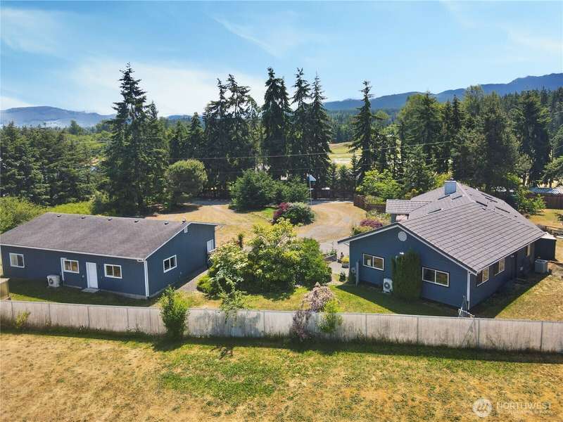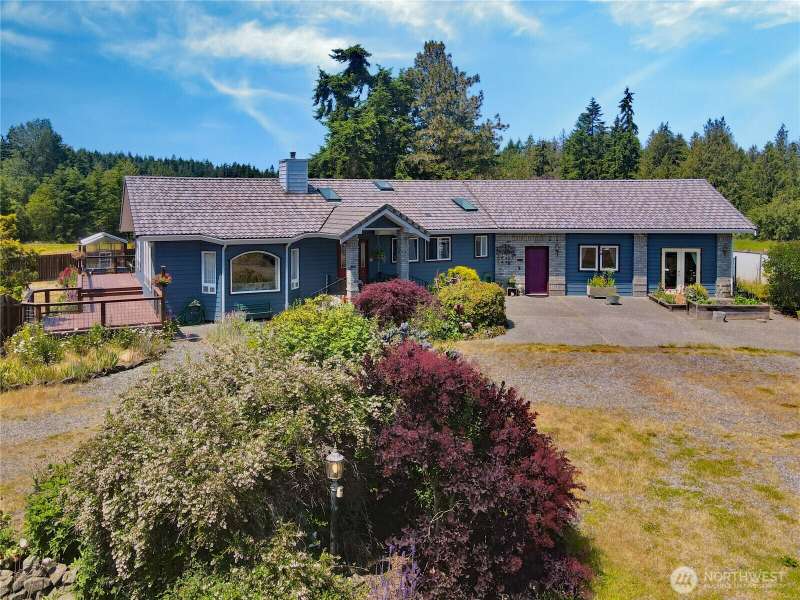 2600 SF rambler on 2.3 acres with 1600 SF shop. The interior of the home boasts a 1100 SF great room & sunken living room w/ hardwood floors & wood stove. Kitchen w/ ample cabinetry & bar seating connects to a dining area with sliding glass door leading to rear deck. Primary bedroom has en suite. One of the other bedrooms adjoins a full bath. Rear yard has greenhouse, gazebo, & firepit. Other features include heat pump with AC, rounded walls, wrap-around decking, & marble entry. The detached shop has water & plumbing, minisplit for heat/AC, & 200 amp electric service w/ welder & RV plugs. Private setting with quick access to Hwy 101 & less than 10 mins from downtown Sequim. Need more land? A 2.47-acre parcel is available next door.