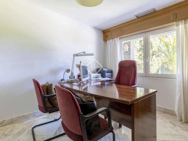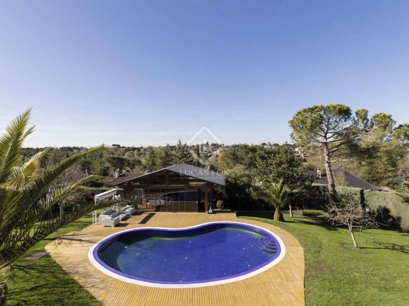 Lucas Fox is proud to present this wonderful detached villa with a beautiful garden and a private pool, located in the best area of the prestigious Las Lomas neighbourhood , in Boadilla del Monte. This villa is a real gem. It features a swimming pool and a guest annex that blends seamlessly with the design of the plot and its natural surroundings. In addition, it sits on a flat plot of almost 3,000 m² with a regular shape, with the rear pool area completely facing south. In addition, it is located in an elevated position with respect to the neighbours. A welcoming front garden welcomes us, with a path that leads us to the main entrance. From this welcoming welcoming porch, we cross to the lobby that leads to the rest of the floors. On the left, we find a practical study or bedroom, with a full bathroom , which can also be used as a guest toilet. Next, we find the large living-dining room, doubly connected to the kitchen and with direct access to the garden and the closed terrace or greenhouse. The living room is independent and large, ideal for family or friends gatherings. At the back, we come to the bright designer kitchen, recently renovated, with straight lines and plenty of storage space. This kitchen has an office and drying area, as well as direct access to the garden. Finally, on this floor there is a spacious living room. The kitchen and the living room enjoy underfloor heating with aerothermics. Going up the imposing staircase, we reach the upper floor , dedicated exclusively to the night area. It houses three large bedrooms, for double beds, all of them with built-in wardrobes, two full bathroom and the large main bedroom, with a private bathroom, dressing room and open terrace. On the lower ground floor, we have a large and comfortable garage with automatic doors and enough capacity for up to three cars; a sauna area, storage room and a service area with a bedroom and bathroom. Without a doubt, the best thing about the house is the beautiful garden, fully established with a great variety of vegetation. Its elevated position guarantees privacy between neighbors. Here, there is the brand new pool house or guest house, with a living-dining room, barbecue and kitchen with breakfast bar. In Las Lomas, we can find nearby shopping areas such as Infante Don Luis Avenue, just a few minutes away, as well as the educational centers St. Michael's School and Mirabal School, among other offers. It is located near Majadahonda and enjoys excellent road communications (M-500, M-501), public transport (bus, commuter trains and light rail), good social and health facilities (Puerta de Hierro hospital, Montepríncipe hospital) and shopping centres (Gran Plaza 2 or Equinoccio). Contact Lucas Fox today by phone or email to arrange a viewing. We are open seven days a week to accommodate our customers' needs. You can also visit us at our Lucas Fox Lounge on Avenida de Europa, 38 in Pozuelo de Alarcón. This way we can analyze your needs in more detail and help you find the perfect home or investment.