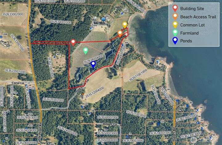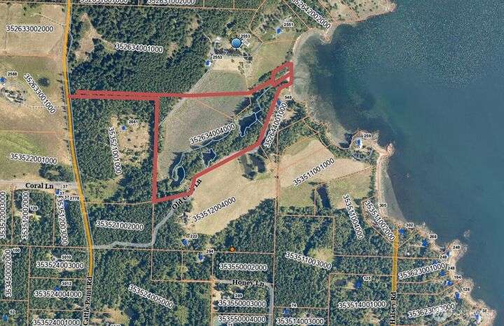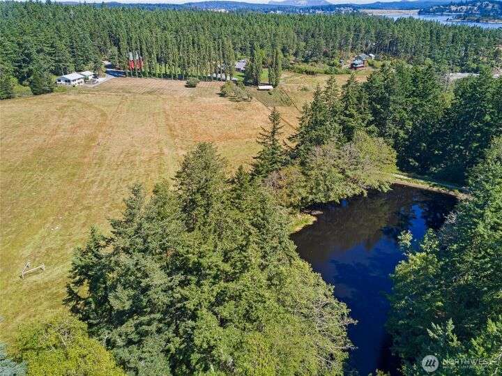 Discover a rare and serene opportunity on San Juan Island - 25+ acres of pristine land featuring three magical ponds, open farmland or pasture ready for your vision, and a thoughtfully selected building site. This unique property offers accessible low-bank waterfront with a gravel beach, gazing out over tranquil Mulno Cove and Griffin Bay. Enjoy peaceful surroundings while remaining just minutes from town amenities. Whether you dream of a private retreat, hobby farm, or legacy estate, this extraordinary setting offers a blank canvas in one of the island's most picturesque locations.