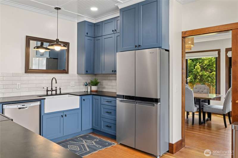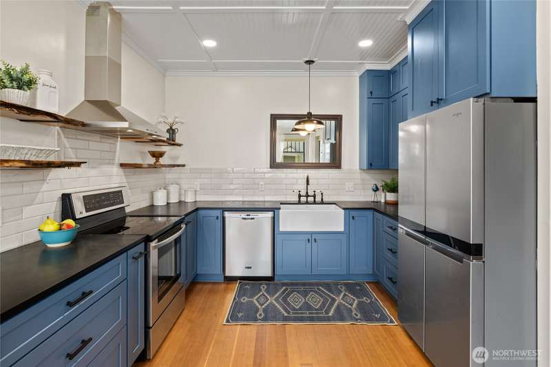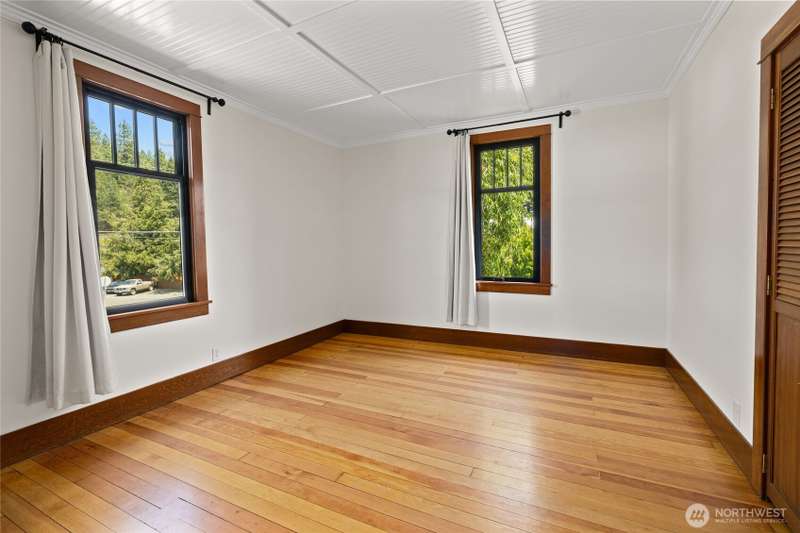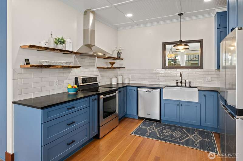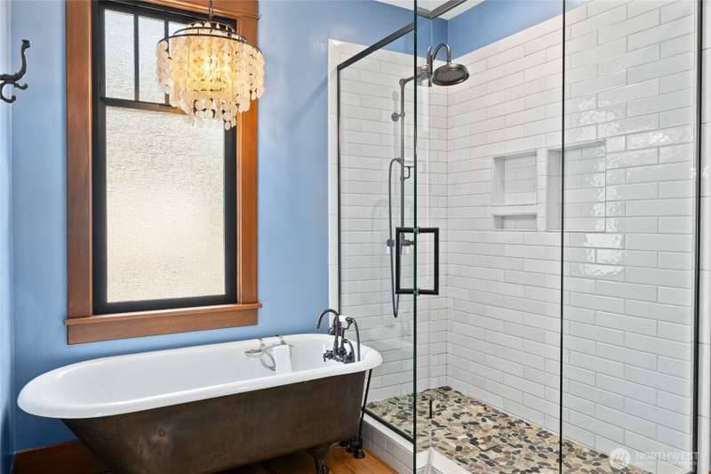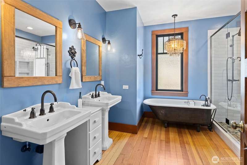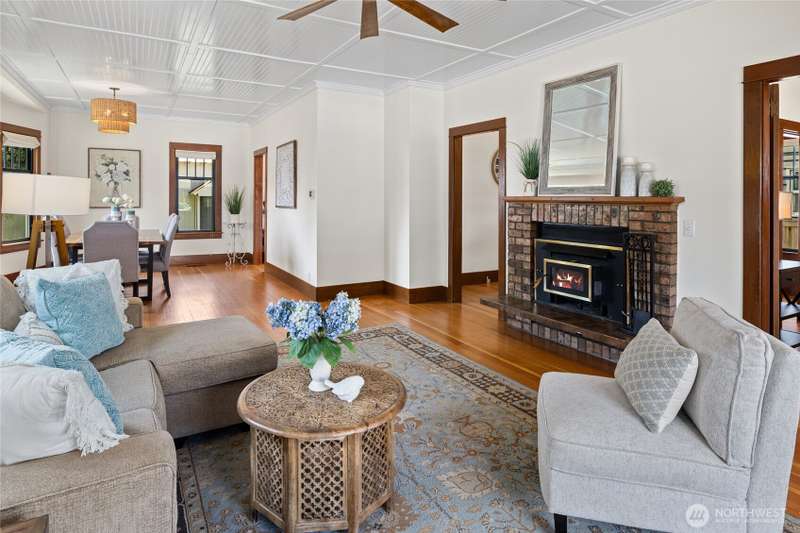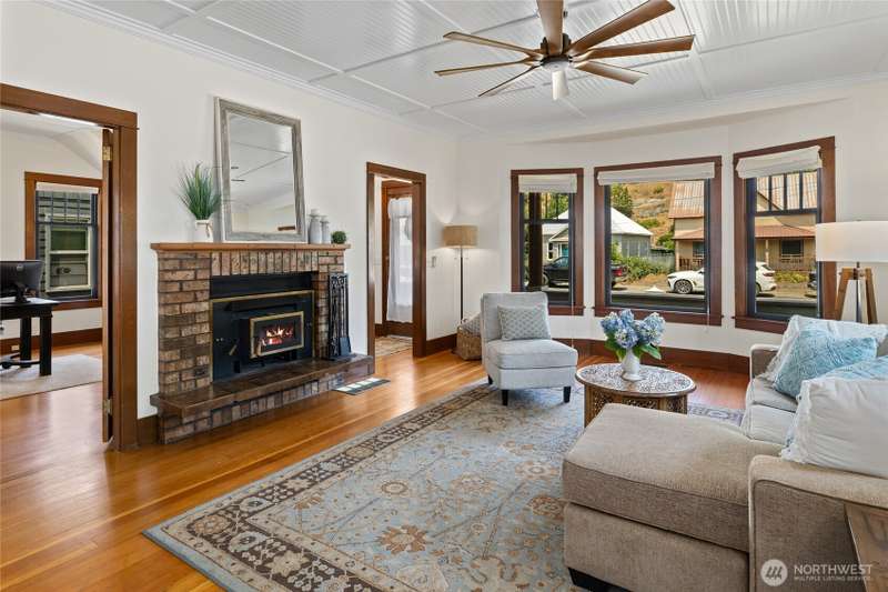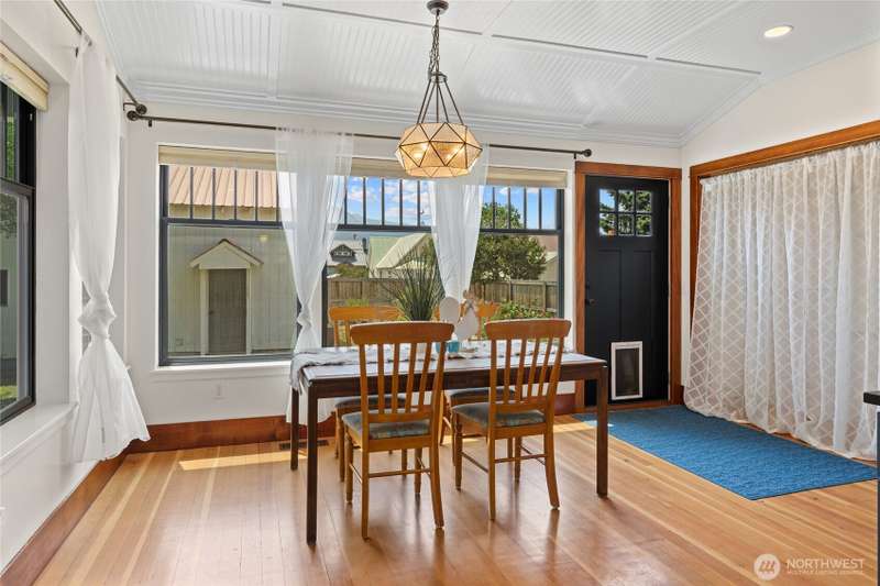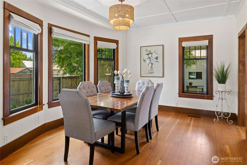 Discover the perfect blend of vintage elegance and modern amenities in this stunningly revived 1900s home. Restored hardwoods, beadboard ceilings & beautifully wood-wrapped Milgard windows throughout set the tone. Gorgeous remodeled kitchen with cozy nook is perfect for entertaining. Versatile main floor room is adaptable as a bedroom or office. Upstairs offers three bedrooms & a signature bath anchored w/an antique clawfoot tub. Original wood siding has been meticulously restored to its full beauty w/cedar shake accents added to reflect historic photos. Updates include new HVAC system, electrical panel, light & plumbing fixtures, all windows. Enjoy a new back deck, 6' cedar fenced yard & 24x32 shop. This home radiates quality & character.