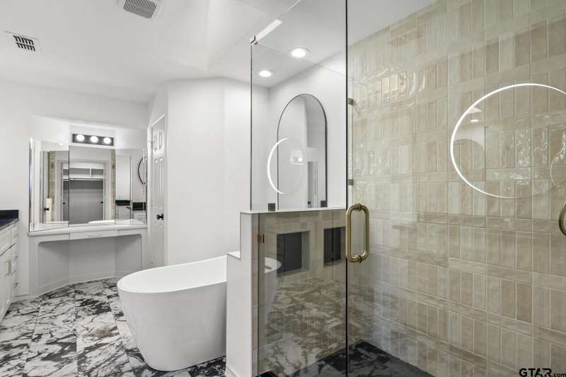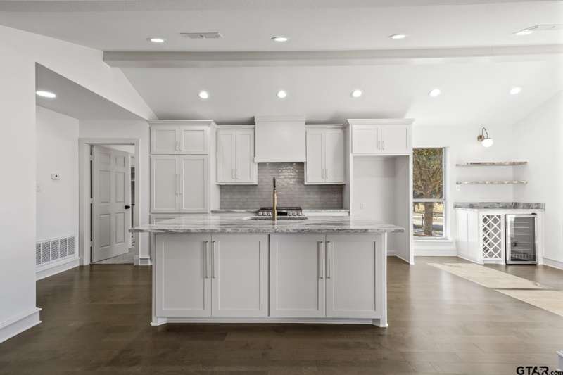 Beautifully remodeled home located in the prestigious Mount Pleasant Country Club! This stunning property features a grand living room with a striking fireplace, perfect for hosting family and friends. The modern eat-in kitchen boasts an oversized island, stainless steel appliances, exquisite countertops, and a built-in wine fridge. The oversized primary suite offers a luxurious ensuite bathroom with dual vanities, a large soaking tub, a glass shower, and walk-in closets. Two guest rooms share a stylish hall bath. Enjoy privacy in the fenced backyard and relax on the covered porch. This home is perfect for those seeking comfort, style, and upscale living in a desirable neighborhood.