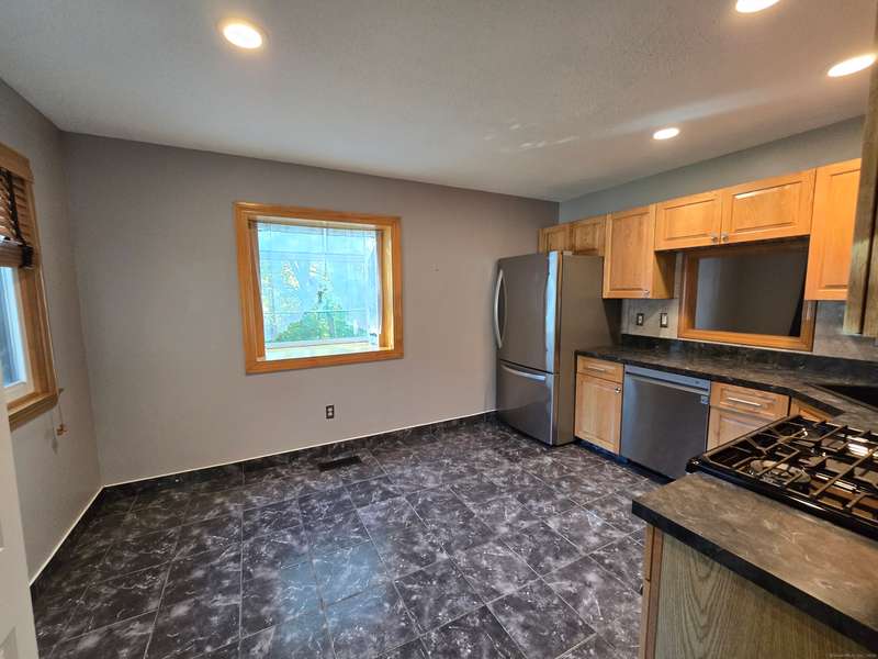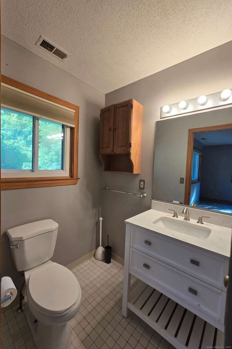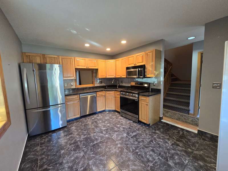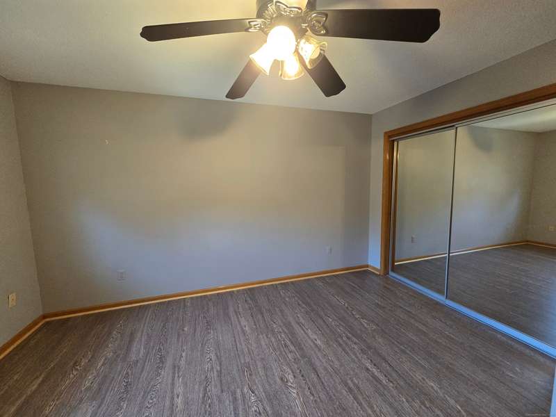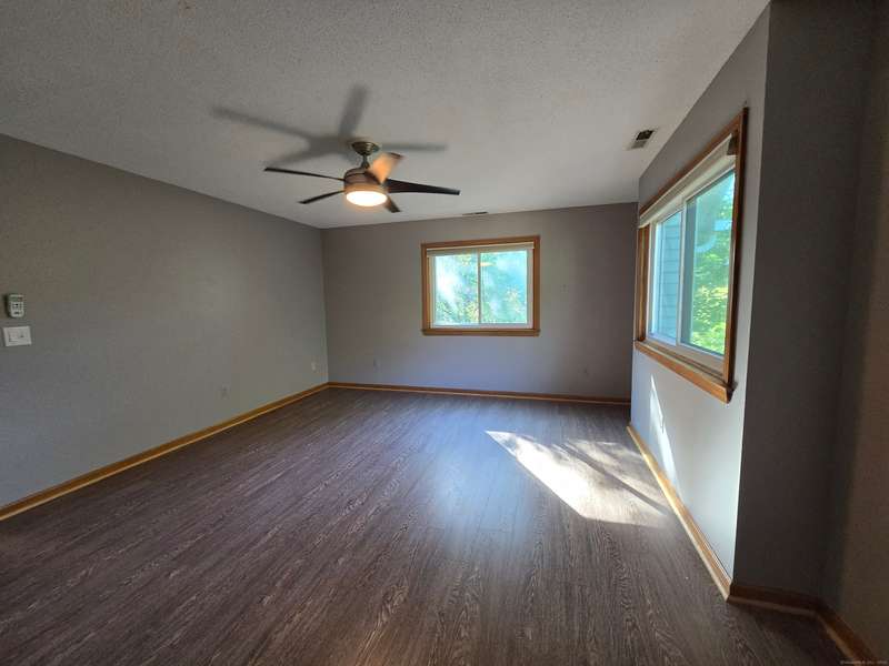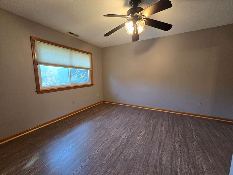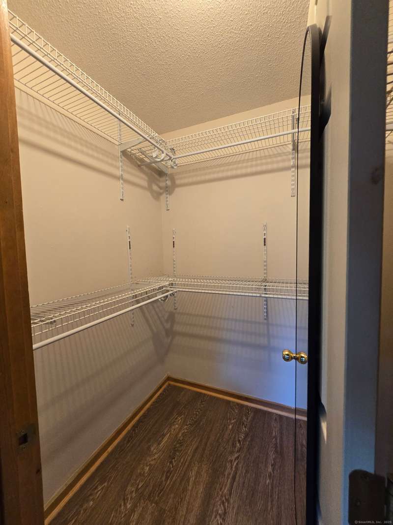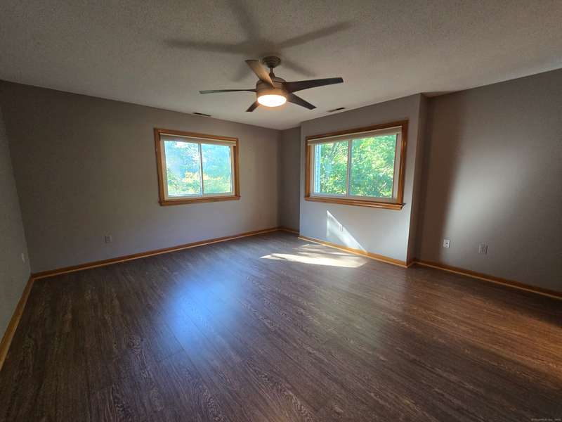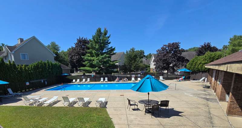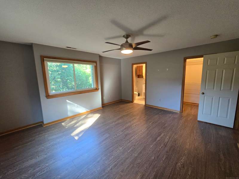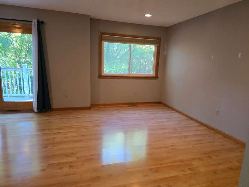 The coveted end unit in Foxboro. Open floor plan with large eat-in kitchen with lots of cabinets, counter space, ceramic tile flooring, and stainless steel appliances. The spacious living room dining room combo has laminate flooring and a slider to the back deck overlooking the woods. Upstairs you will find a large master bedroom with full bath, a ceiling fan, and a walk-in closet. The second bedroom has a generous size closet as well as a ceiling fan and access to the large second bathroom. Finally, you will find your washer and dryer on this floor for the ultimate convenience. The heating and hot water system is high-efficiency and the one car garage offers additional storage. All this and a very short walk to the pool make this a wonderful place to call home. HOA assessment has been paid in full by seller.
