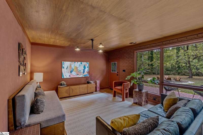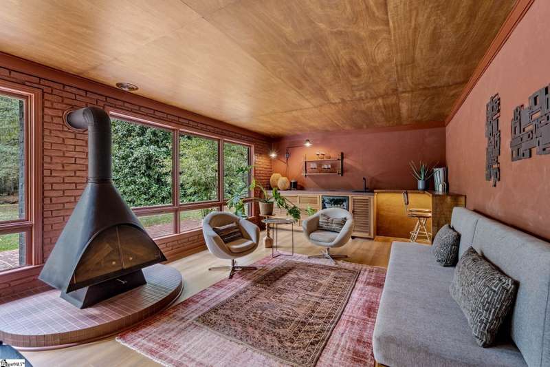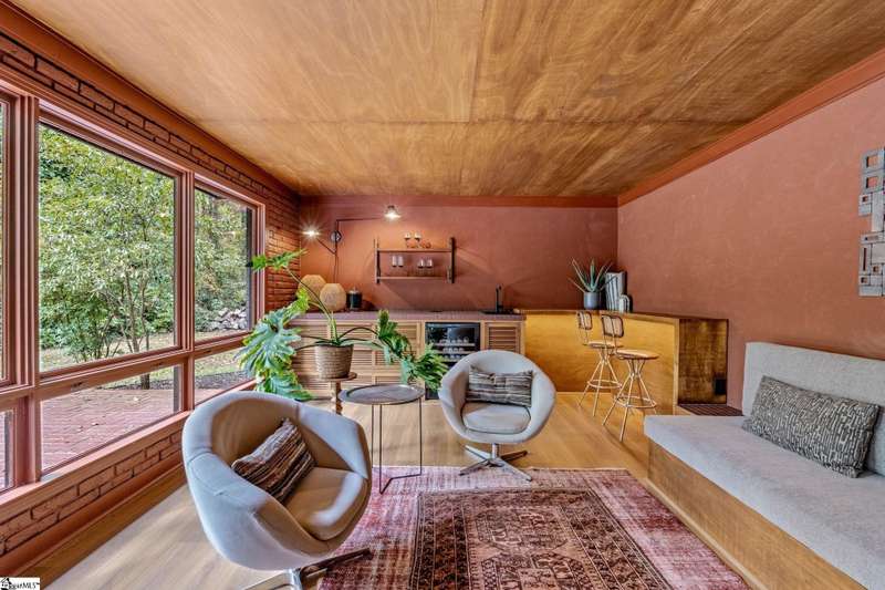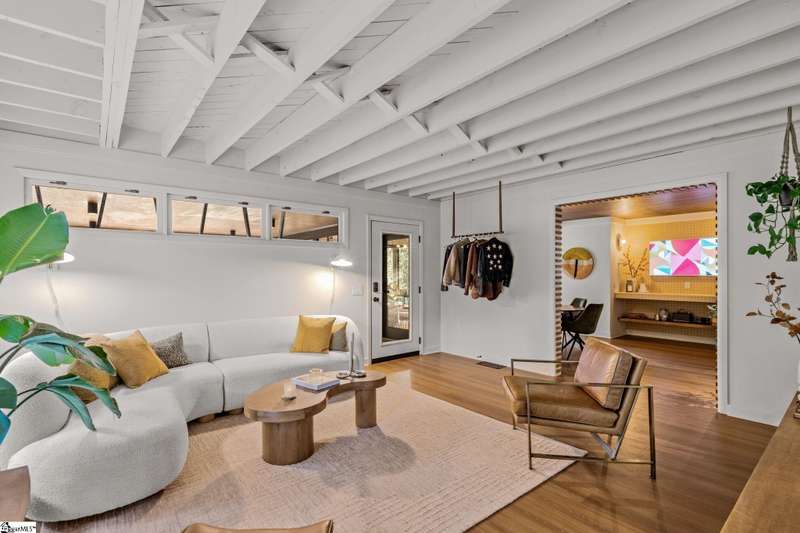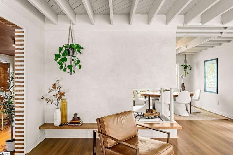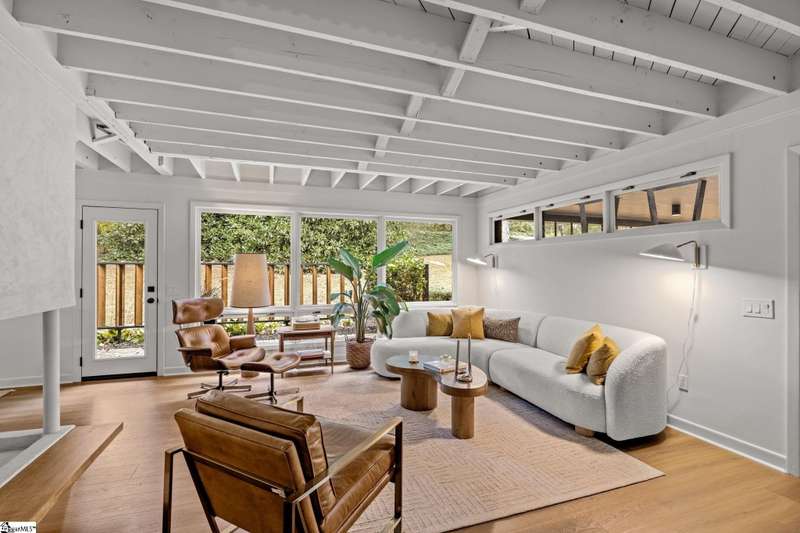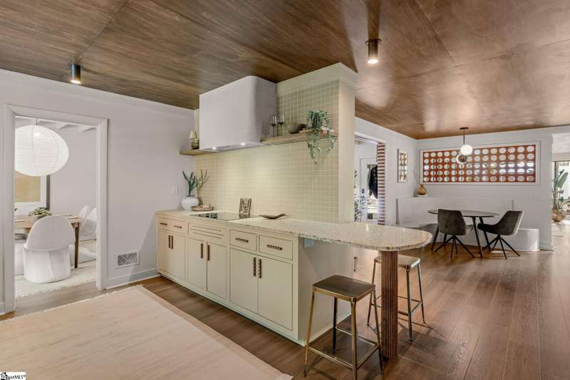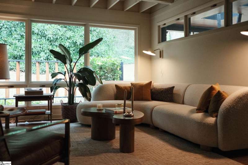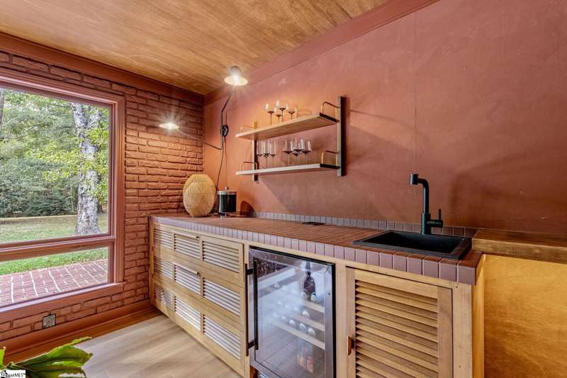 This home is offered by Blair Miller with Wilson Associates. Please contact Blair at 864.430.7708 or blair@wilsonassociates.net. Welcome to 18 Garden Terrace, a renovated mid-century modern gem close to downtown Greenville. You may even remember this featured home from the amazing GVLMOD Tour. Spanning just under 3,100 square feet, this 4-bedroom, 3.5-bath home beautifully preserves its original character and design while embracing modern comfort. The stunning kitchen mirrors true mid-century design with Terrazzo countertops, a tiled backsplash, and sleek cabinetry. A cozy breakfast nook with authentic screen block detail and a light-filled living room with floor-to-ceiling windows create an inviting, retro-inspired ambiance. The hallway, lined with custom wainscoting and vintage-inspired color choices, leads to three spacious bedrooms on the main level and two full bathrooms. Bathrooms feature playful, period-style tile and modern finishes. Downstairs, the primary suite offers a serene retreat with dual sinks, a walk-in shower, and direct access to a large rec room with a wet bar that is perfect for entertaining. Enjoy having a semi-finished area ideal for a gym or crafting space on the lower level, an attached two car carport AND a one car attached garage. Every inch of this home has been thoughtfully curated to celebrate its mid-century roots while offering an effortless, elevated lifestyle. Situated on an amazing lot, the desirability of this home second to none. Make time for a visit to experience 18 Garden Terrace firsthand.