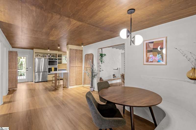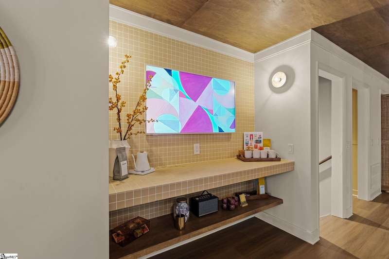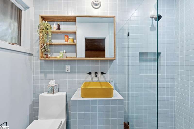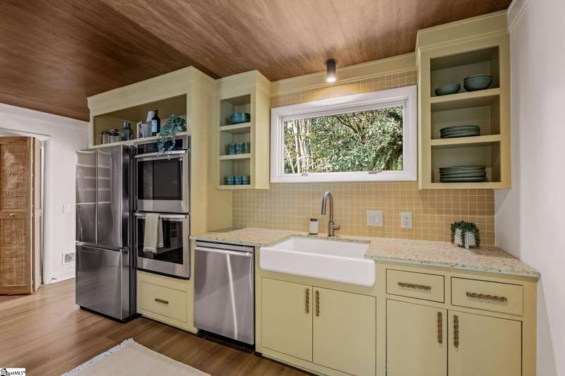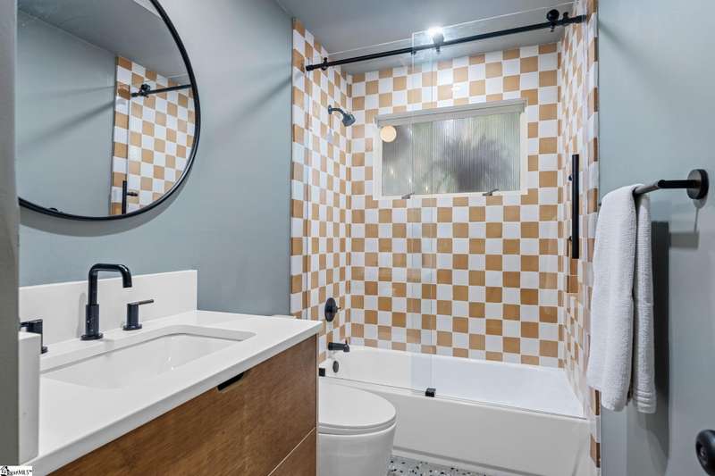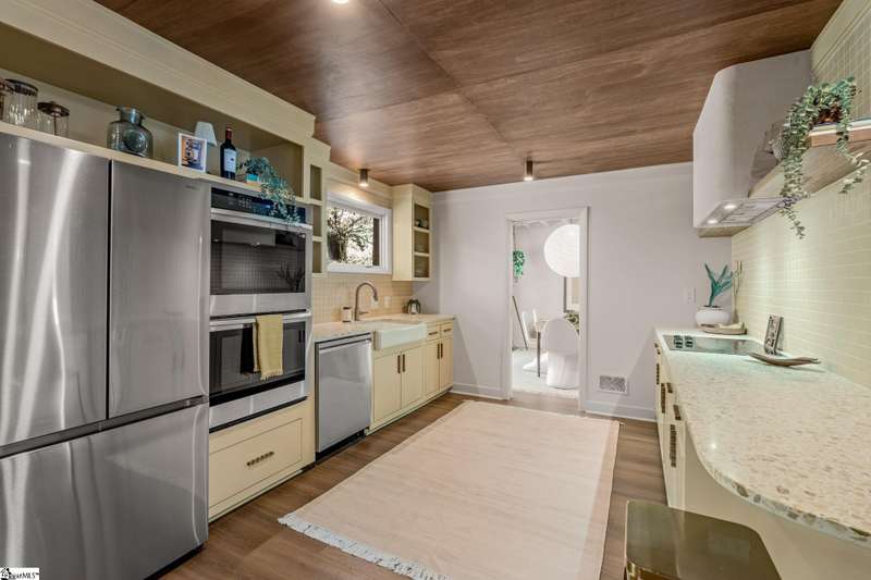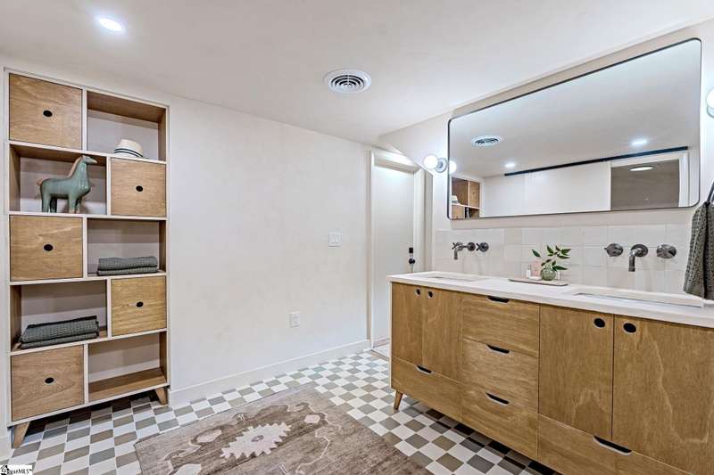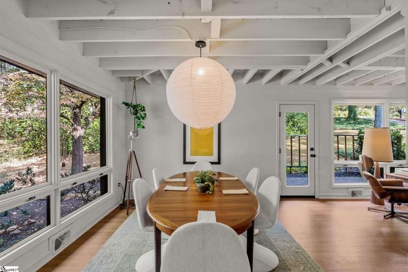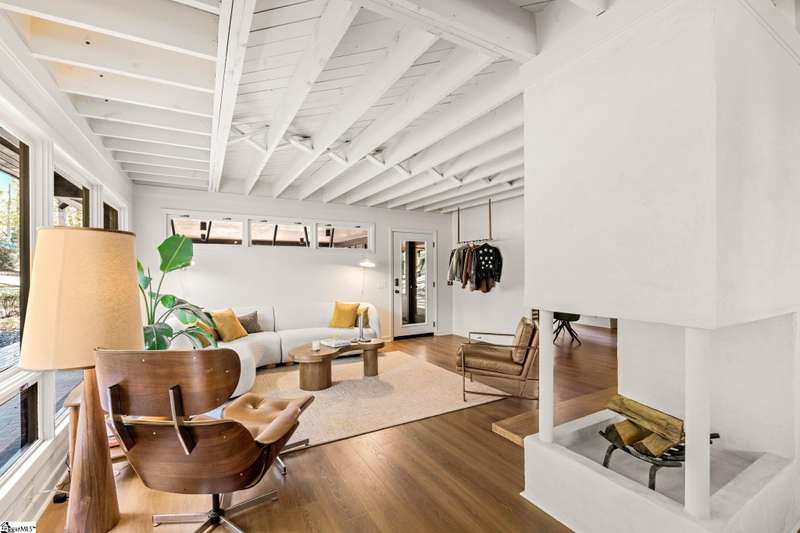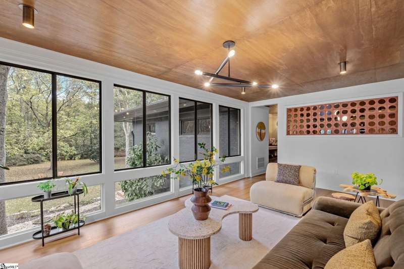 This home is offered by Blair Miller with Wilson Associates. Please contact Blair at 864.430.7708 or blair@wilsonassociates.net. Welcome to 18 Garden Terrace, a renovated mid-century modern gem close to downtown Greenville. You may even remember this featured home from the amazing GVLMOD Tour. Spanning just under 3,100 square feet, this 4-bedroom, 3.5-bath home beautifully preserves its original character and design while embracing modern comfort. The stunning kitchen mirrors true mid-century design with Terrazzo countertops, a tiled backsplash, and sleek cabinetry. A cozy breakfast nook with authentic screen block detail and a light-filled living room with floor-to-ceiling windows create an inviting, retro-inspired ambiance. The hallway, lined with custom wainscoting and vintage-inspired color choices, leads to three spacious bedrooms on the main level and two full bathrooms. Bathrooms feature playful, period-style tile and modern finishes. Downstairs, the primary suite offers a serene retreat with dual sinks, a walk-in shower, and direct access to a large rec room with a wet bar that is perfect for entertaining. Enjoy having a semi-finished area ideal for a gym or crafting space on the lower level, an attached two car carport AND a one car attached garage. Every inch of this home has been thoughtfully curated to celebrate its mid-century roots while offering an effortless, elevated lifestyle. Situated on an amazing lot, the desirability of this home second to none. Make time for a visit to experience 18 Garden Terrace firsthand.