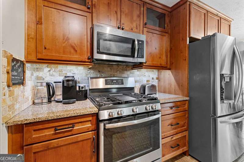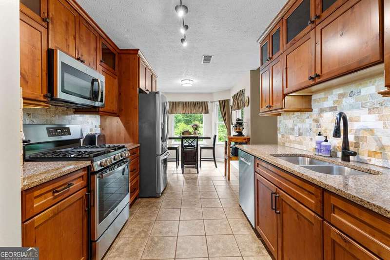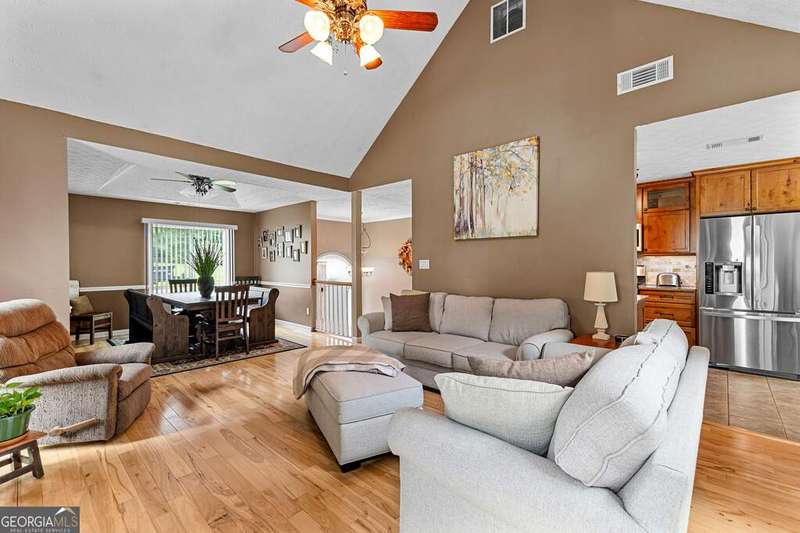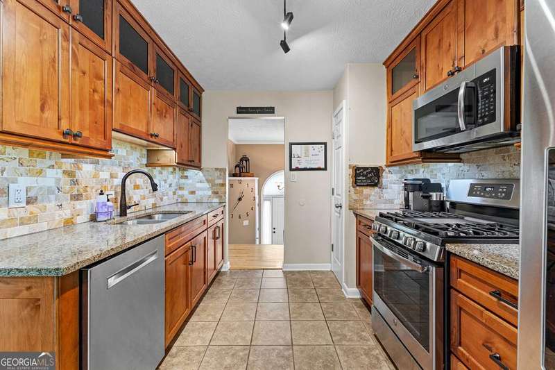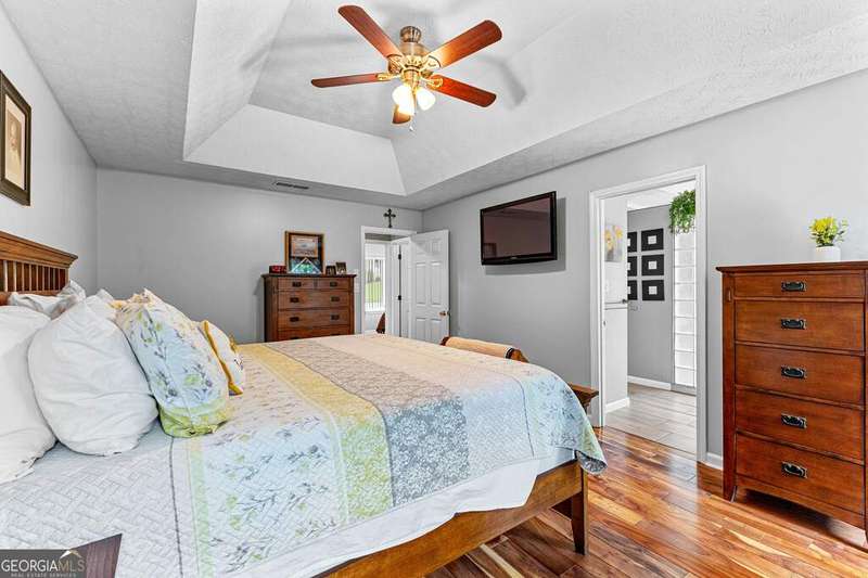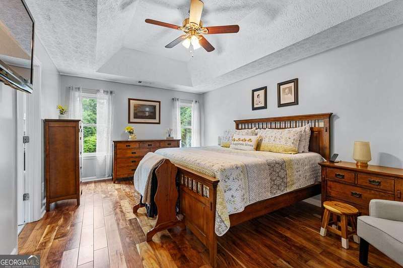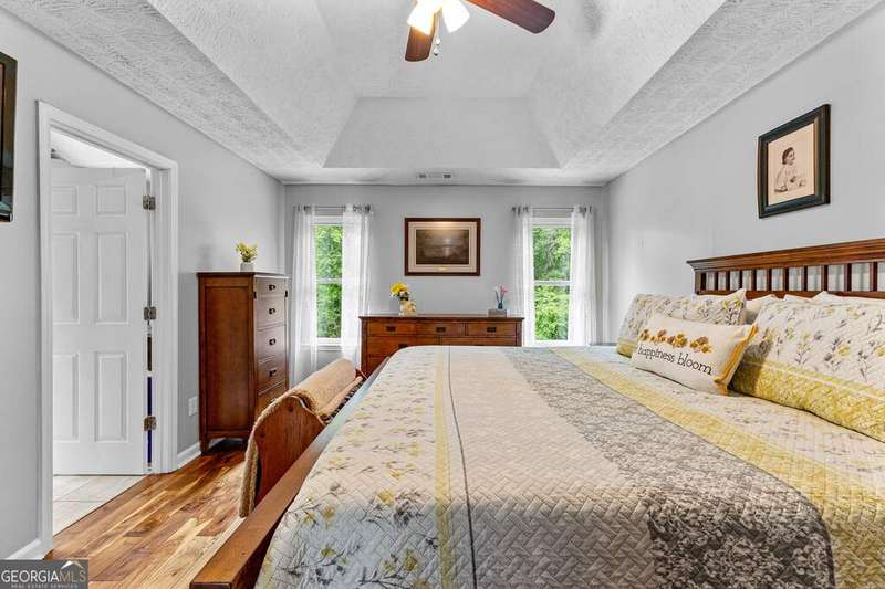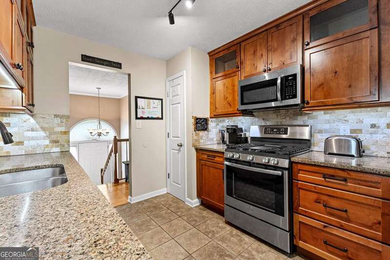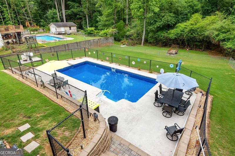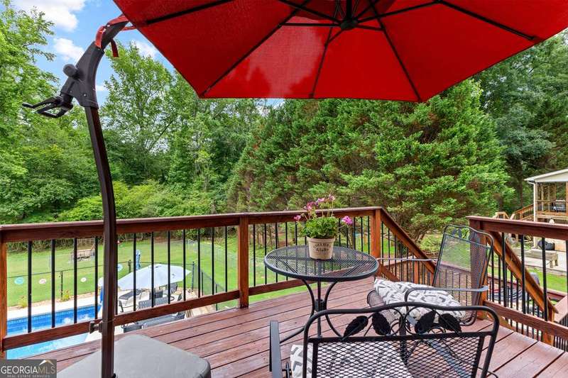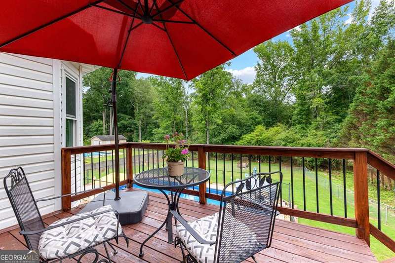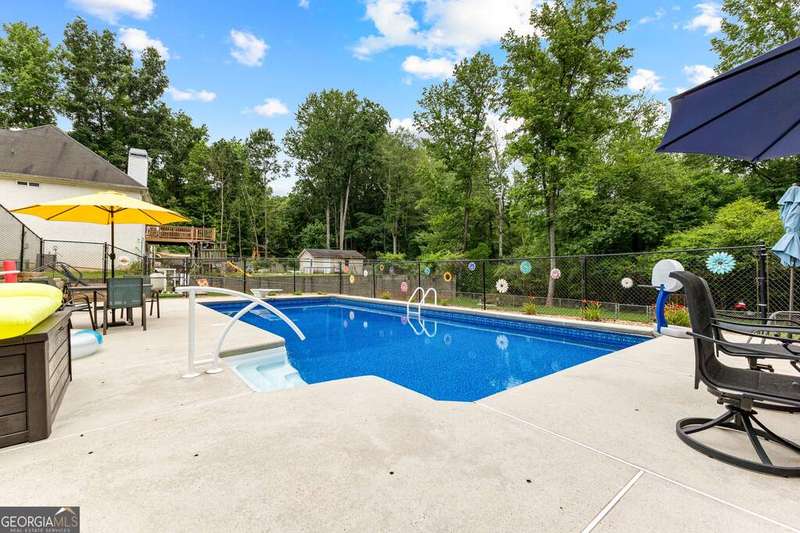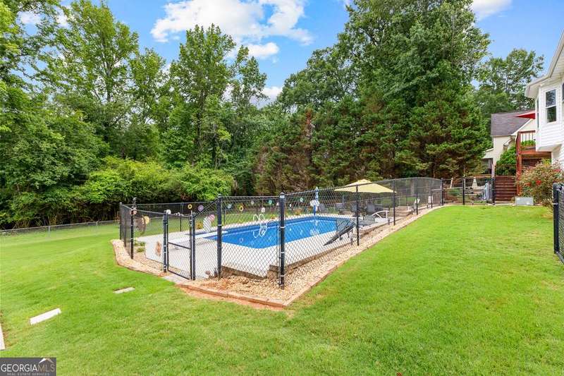 Welcome to this beautifully updated 4-bedroom, 3-bath home that truly has it all-including a private backyard oasis! Inside, you'll find hardwood flooring throughout (tile in bathrooms and no carpet!), fresh paint, and a spacious bonus room perfect for a workshop, hobby space, or home office. The primary suite features custom closet shelving and a completely remodeled bathroom with a stunning 8-foot walk-in glass block shower and granite double vanity. The hall bath has also been upgraded with an oversized soaking tub and vanity with granite countertop. The kitchen is a showstopper- fully renovated with custom cabinetry to the ceiling, quartz countertops, and under-cabinet lighting. Major upgrades include a BRAND NEW (May 2025) 50-year architectural roof and new energy-efficient windows- both with transferable warranties. Step outside onto the newly stained deck to enjoy the fully fenced backyard with a 16x32 in-ground swimming pool, perfect for summer entertaining or relaxing weekends. Chic sliding doors on both levels provide an abundance of natural light and seamless access to the backyard. Ideally located just 2 miles from I-75 and close to the brand-new Costco, Chick-fil-A, Starbucks, Sprouts, and many other popular conveniences. This is a truly move-in ready home with standout features inside and out.