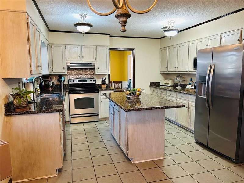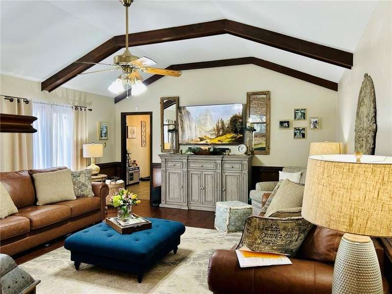 Beautiful home in Smithfield with 4 large bedrooms, double granite vanities in both bathrooms, granite island and counters in sunny kitchen with lots of counter space and cabinets. Breakfast room with bay window and a garden window above the kitchen sink. Pretty hardwood floors, living room, formal dining room, spacious family room with brick fireplace and cathedral ceiling. Raised ceiling in master bedroom with walk in closet. Chair rail, pretty foyer and welcoming front door. Deck overlooking the privacy fenced back yard with playhouse. Double garage with built in storage and workbench. Professionally painted in 2025, Fortified roof in 2017, HVAC in 2018, gas water heater in 2020,concrete hearty board in 2023, termite bond with Arrow, Sprinkler system in front yard. Buyer responsible for verifying all measurements and relevant details.