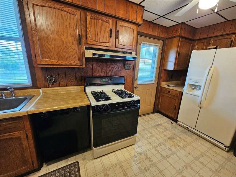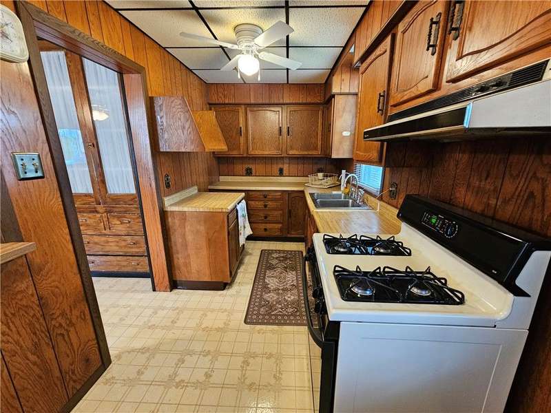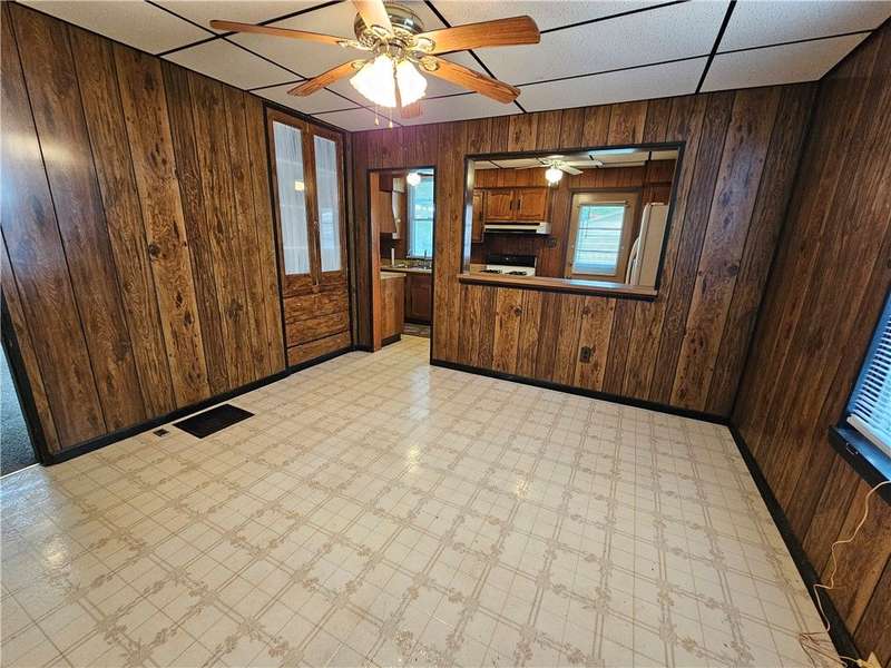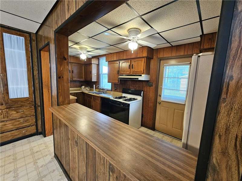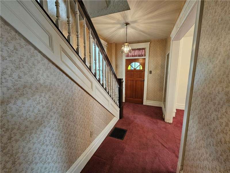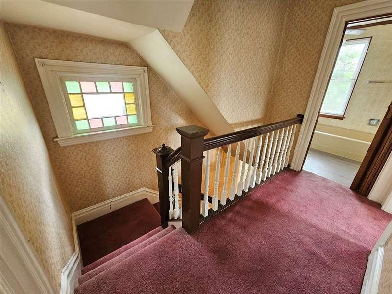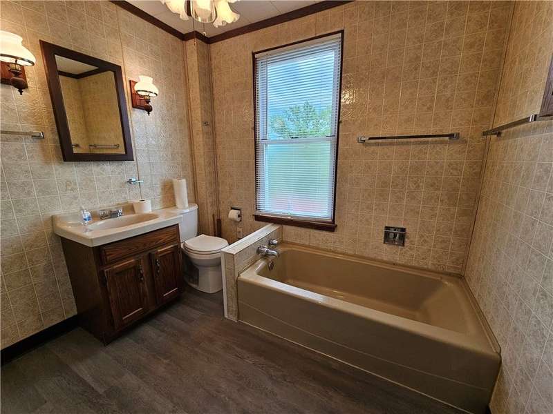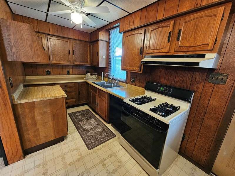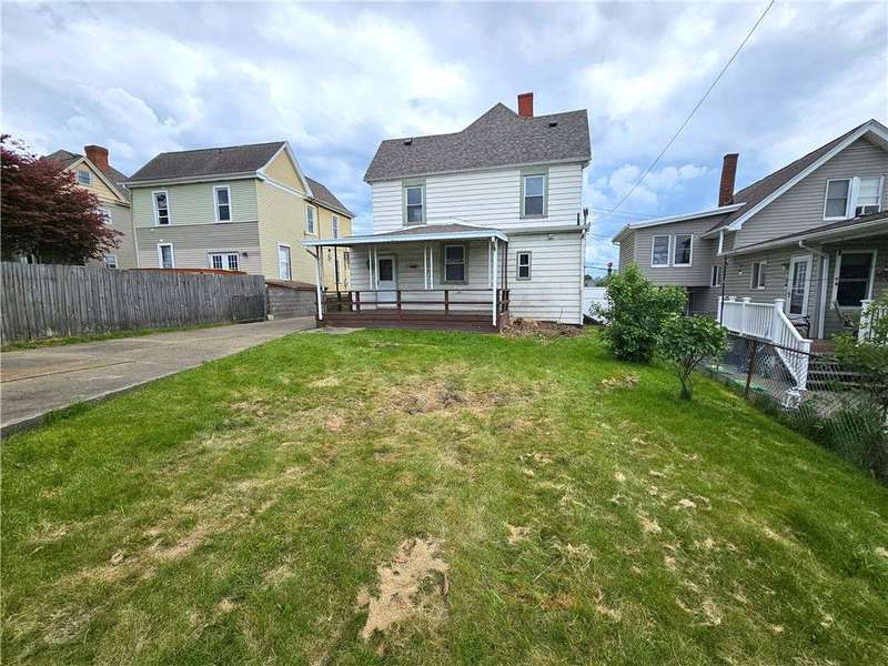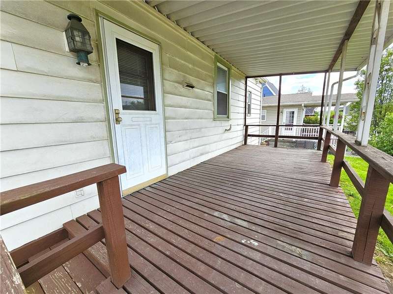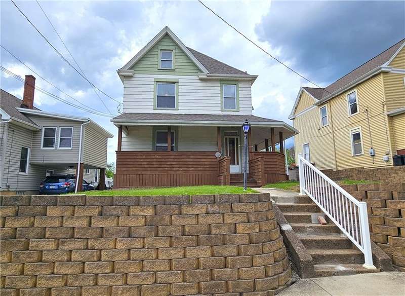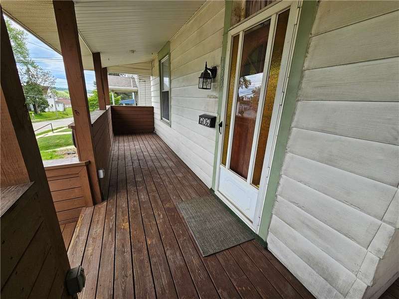 This charming & spacious home is convenient to highways, shopping & dining. The covered wrap around porch offers a main & side entrance. The charming entry w/ beautiful stairs leads to the spacious living room w/ decorative fireplace. The dining room features a built-in cupboard & opening to the kitchen w/ counter space. The kitchen offers wood cabinets & includes the gas stove & refrigerator. A door from the kitchen opens to the covered back deck for outdoor dining. A large bedroom & updated full bath w/ tub/shower combo & large closet is located on the main floor offering one-level living if needed. 3 generous size bedrooms & a 2nd full bath w/ tub are located on the 2nd floor. The walk up attic has the potential to be finished for additional storage or usable space. The basement provides a laundry area w/ washer & dryer, workshop space & storage room. The large 2 car detached garage is a great feature providing more storage & parking space. Many updates & newer roof are a plus!