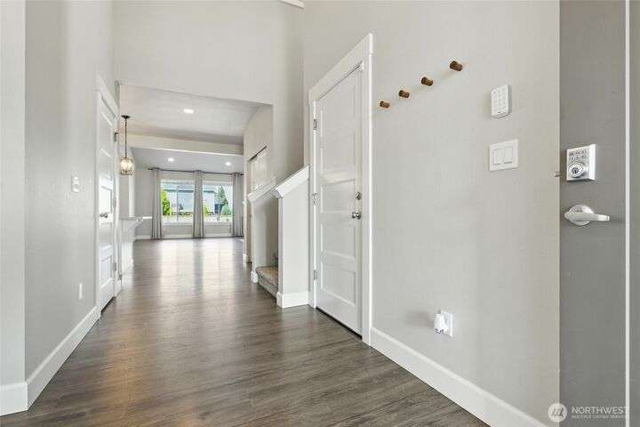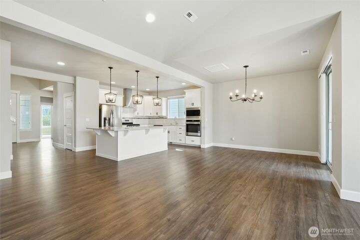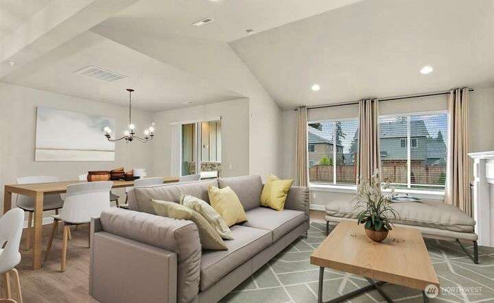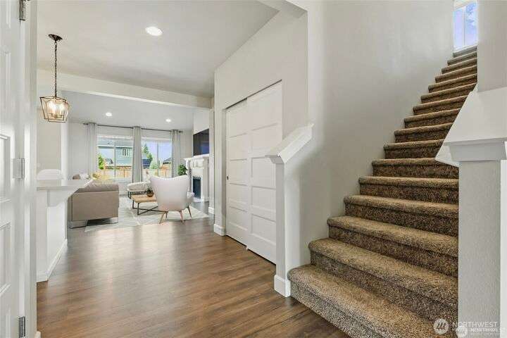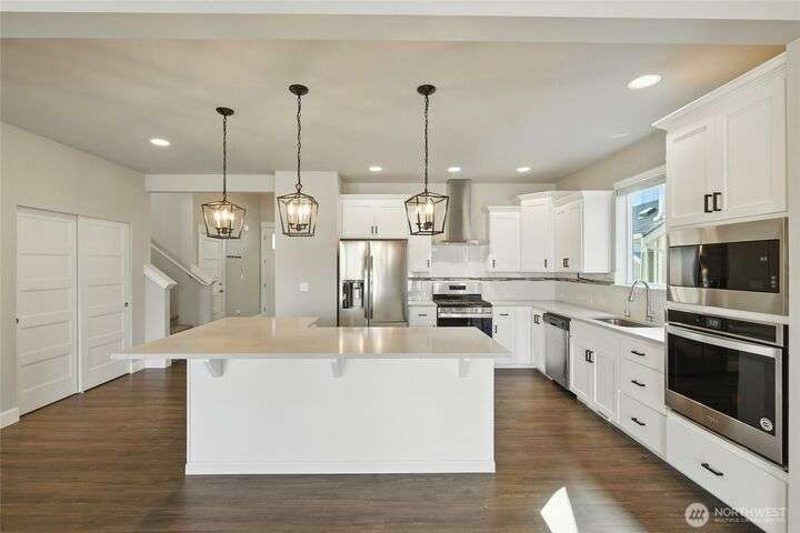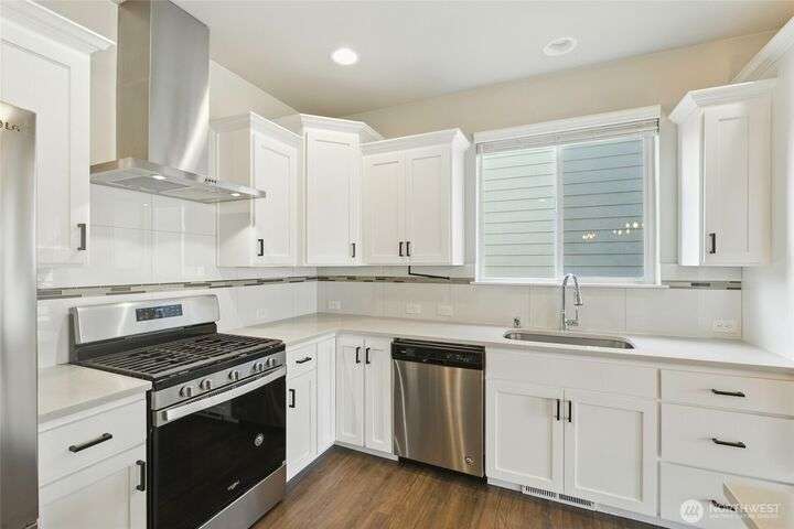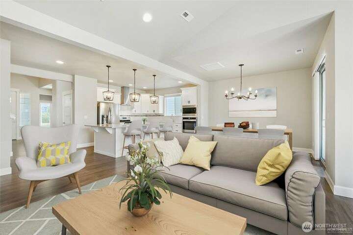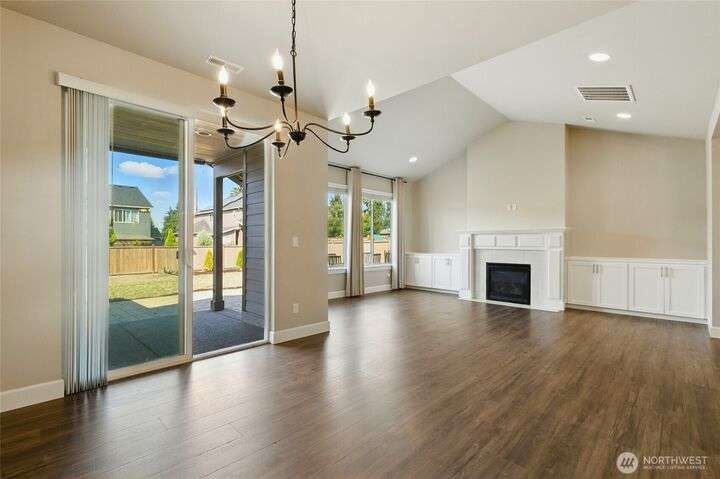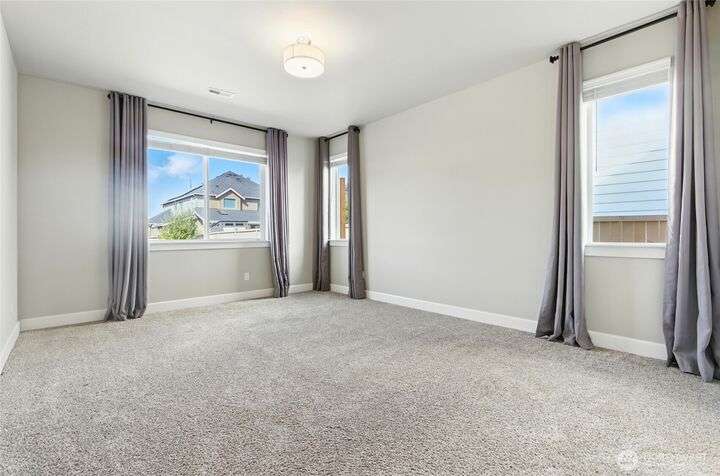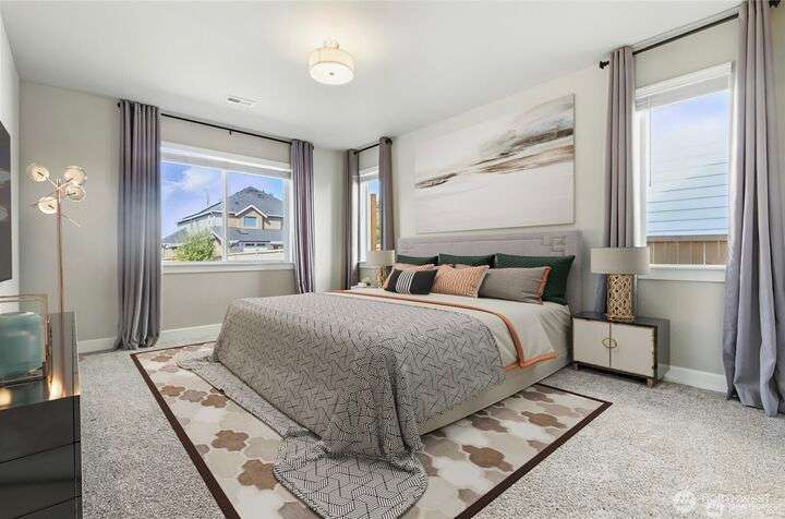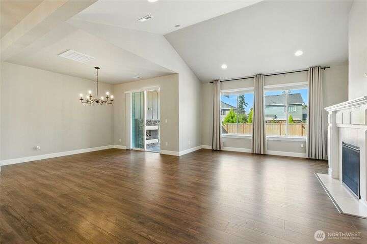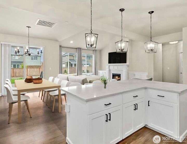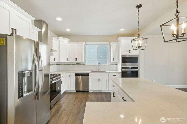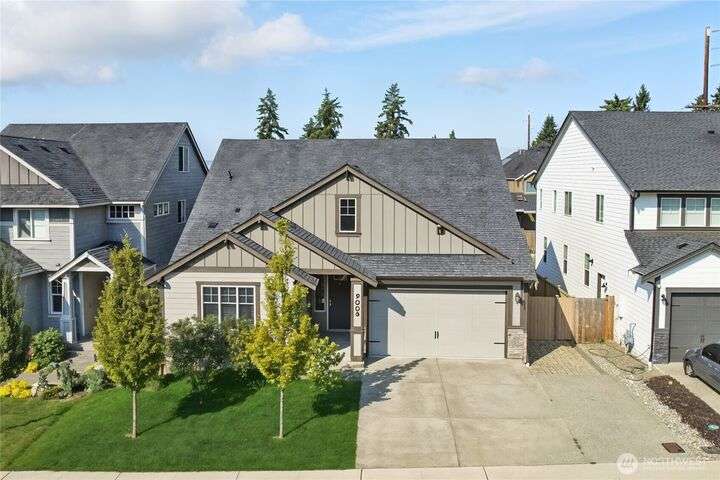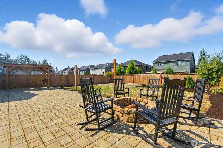 Don't miss your chance to own this stunning modern house. Designed with upscale finishes, this home is the perfect blend of style and comfort. The large windows allow for an abundance of natural light to flood in. It offers 2,470 sq. ft. of luxury space. The main floor features the Owners Suite with 5-piece bath and walk-in closet and 2 bedrooms. The gourmet kitchen features a large island and quartz countertops, full height backsplash, and pantry. Upstairs you will find a spacious bonus room, additional bedroom, and full bath. Modern comforts include a tankless water heater, efficiency furnace, and AC. Enjoy cozy evenings by the outdoor fireplace and firepit amongst the beautifully landscaped yard.