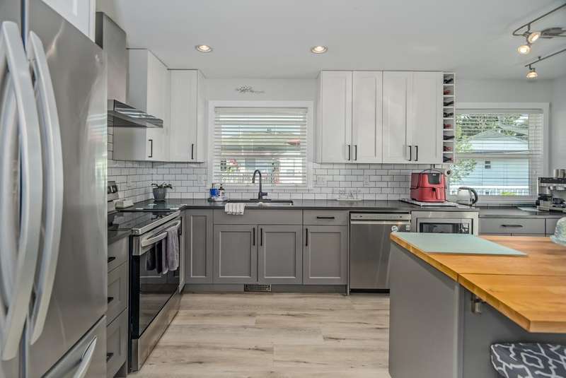 PERFECTLY PITT MEADOWS: Nestled in a quiet cul-de-sac, this beautifully maintained 6-bedroom, 3-bathroom family home offers space, comfort, and peace of mind. Thoughtfully updated throughout, it features a stunning renovated kitchen with LG appliances and a custom movable island, a large primary bedroom with ensuite and an impressive custom wall unit, refreshed bathrooms, new windows and doors, and a spacious new deck perfect for entertaining. BONUS: newer A/C unit, updated electrical and plumbing (including the main water line), newer fence, hot tub rough-in and an insulated powered shed. Ample parking in the long open driveaway and great curb appeal with low maintenance artificial grass. Close to Highland Park, pubs and restaurants, shopping, schools and the West Coast Express.