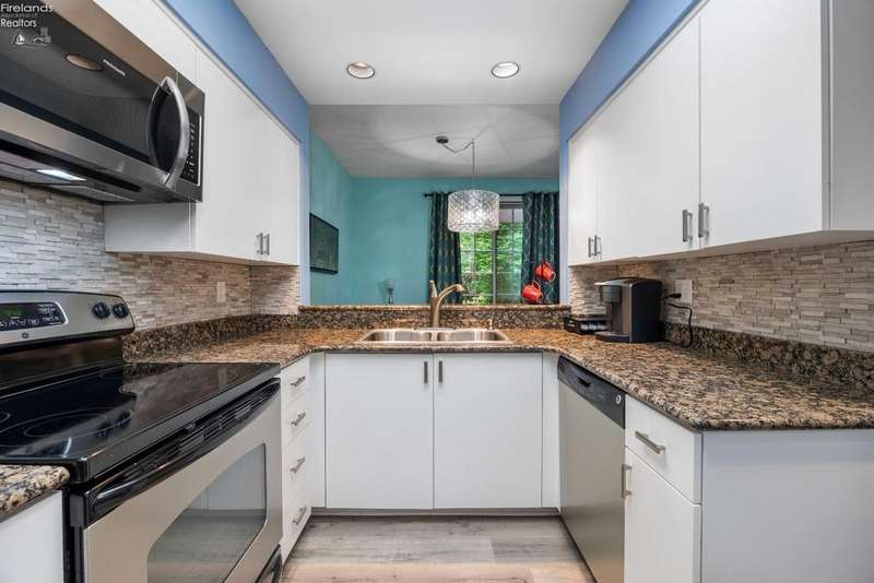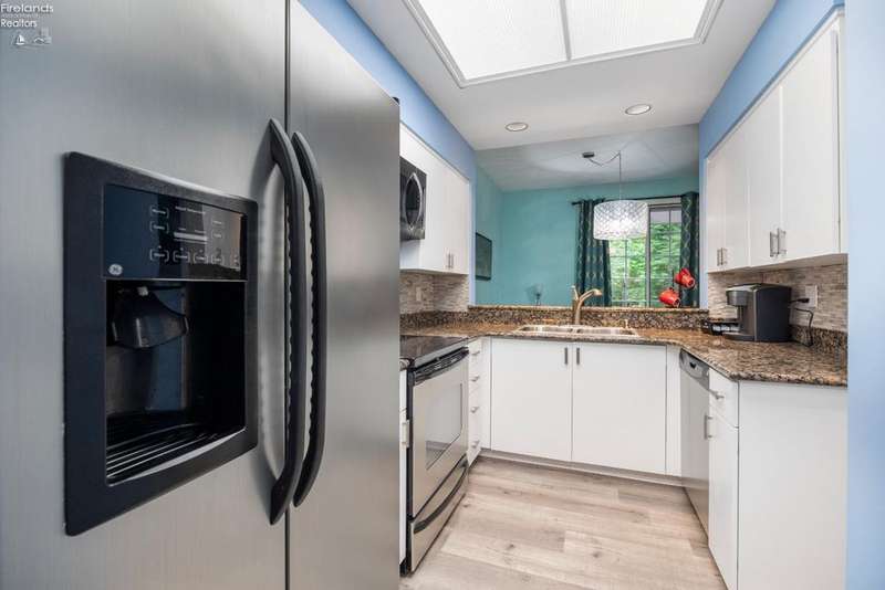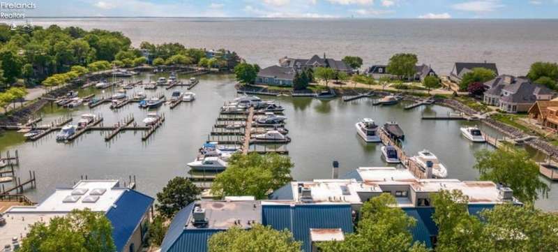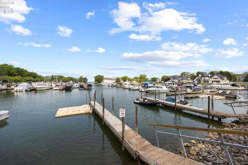 Live the lake life in Luxury in the private gated Le Marin Community on Catawba Island with direct Lake Erie access from your deeded 35 dock slip, F8, in the exquisite 7-acre marina. Amazing one-of-a-kind clubhouse featuring indoor pool, sauna, gym, hot tub, gathering room, oversized new deck on the marina for entertaining. This condo has it all! Entertain in your great room with vaulted ceilings, gas fireplace, natural sunlight, open into the dining area and kitchen. Gourmet kitchen featuring white cabinetry, granite counters, backsplash, ss appliance package, bar seating. Sliding door leads to your private patio area w/storage closet - great nature view. Second floor boasts a primary bedroom w/ensuite spa-like bath with tiled walk-in shower, tile floors; walk-in closet. Second bedroom w/ensuite and walk-in closet. Finish off the third floor for a 3rd bedroom if you wish or convert the garage. Adjacent to the CIC Club, local restaurants, Ferry service to islands, and more!