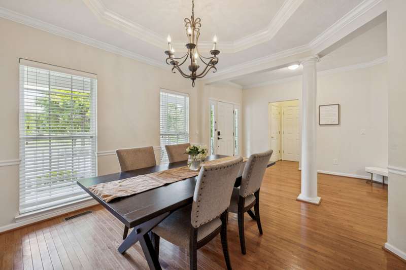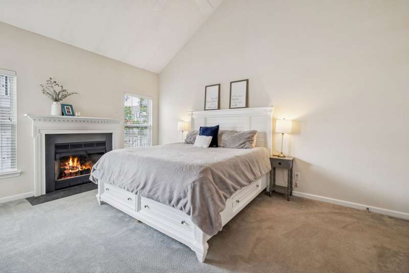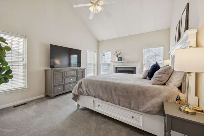 Welcome to this charming home in the heart of Lenox Village! The main residence offers 2,331 sq/ft of beautifully designed living space featuring a bright eat-in kitchen that opens to a sunlit great room with a stacked-stone fireplace. The main-level primary suite includes its own cozy fireplace, while vaulted ceilings, hardwood floors, and architectural ceiling details add style throughout. Relax on the wraparound covered porch with porch swing included, overlooking a tree-lined corner lot in a walkable neighborhood just steps from shops, dining, parks, and more.