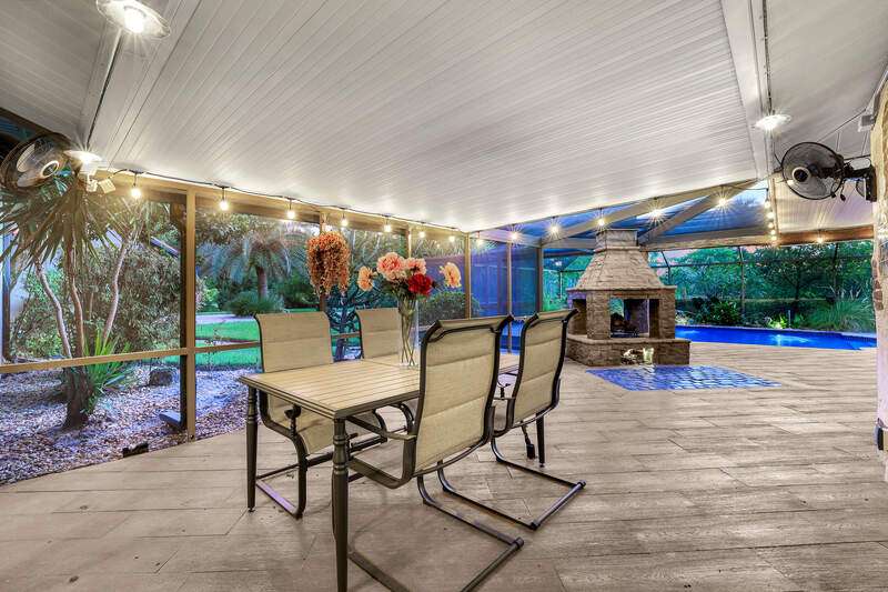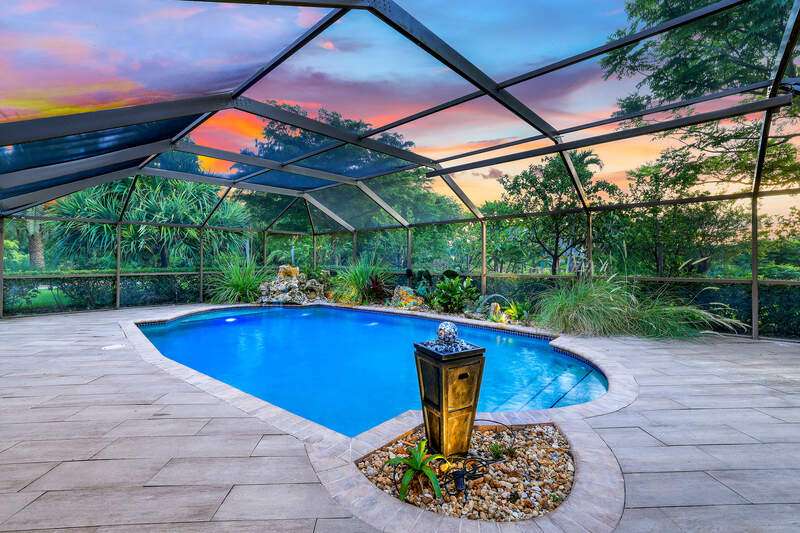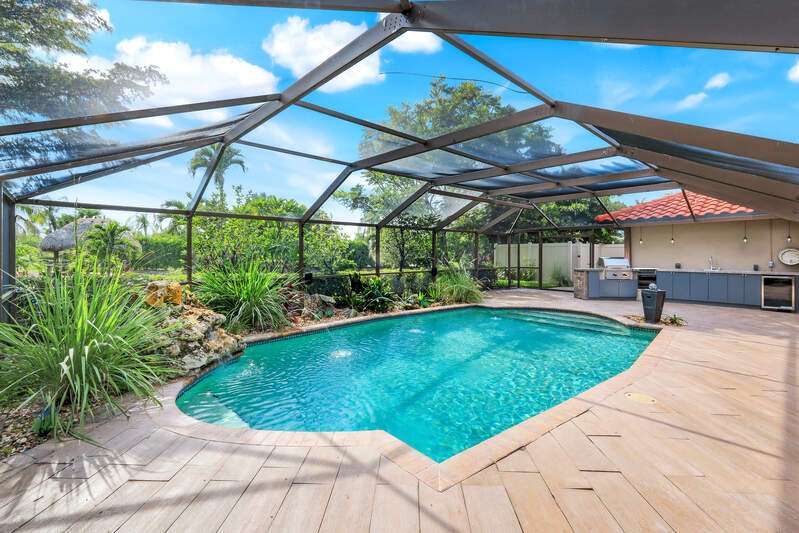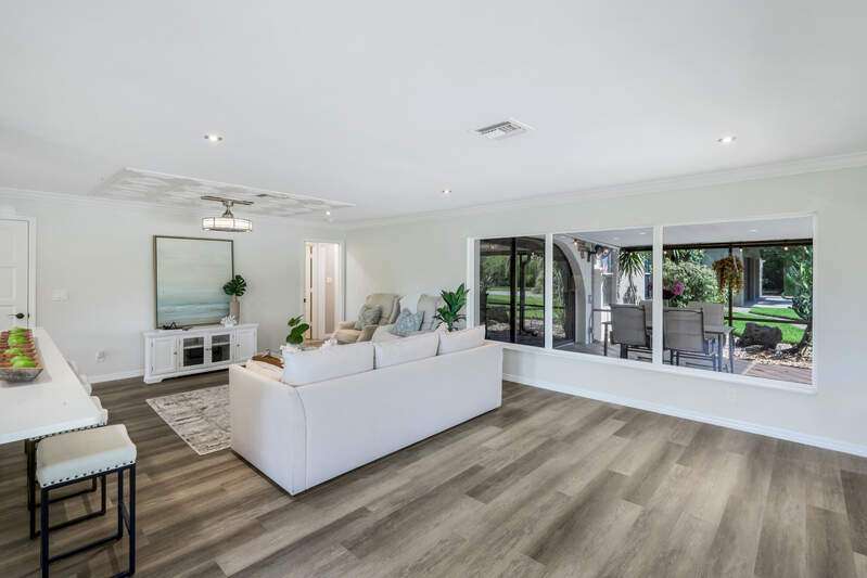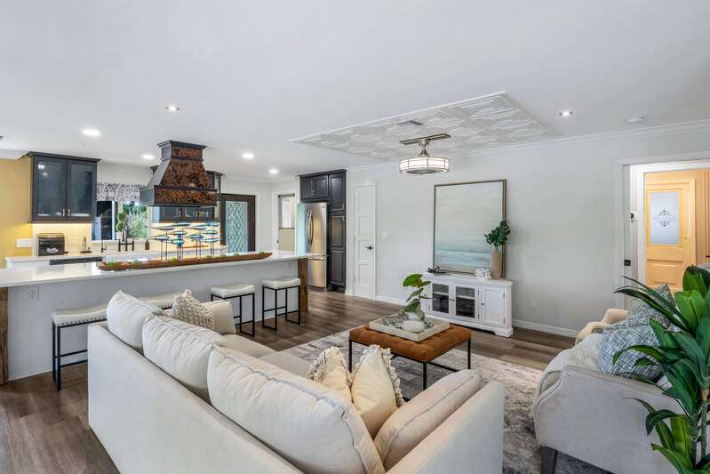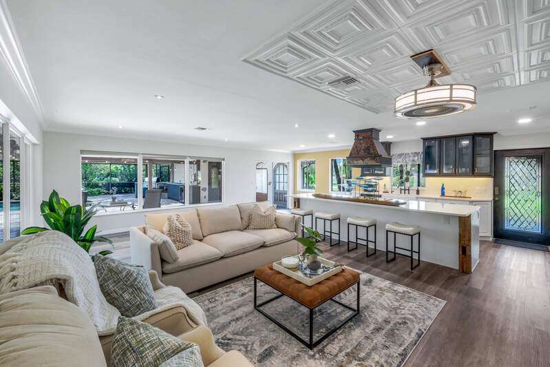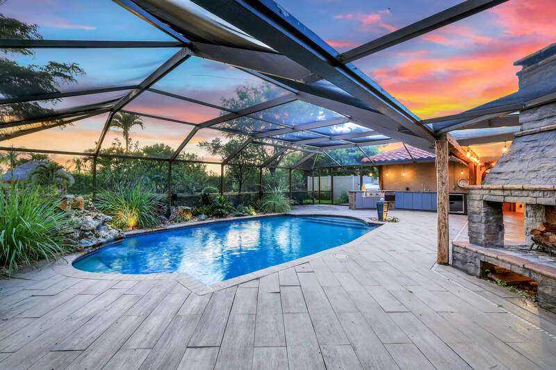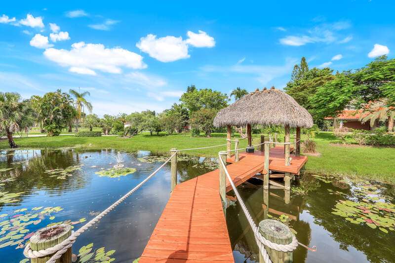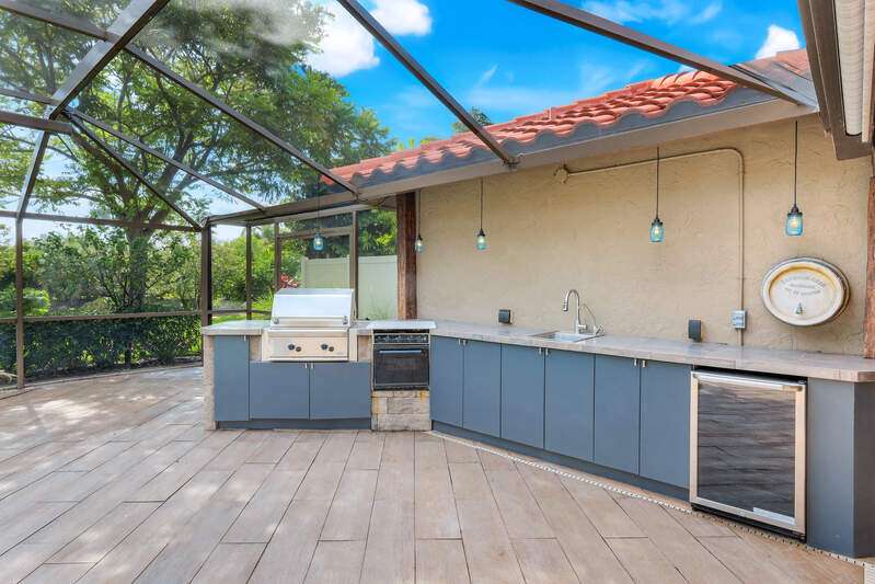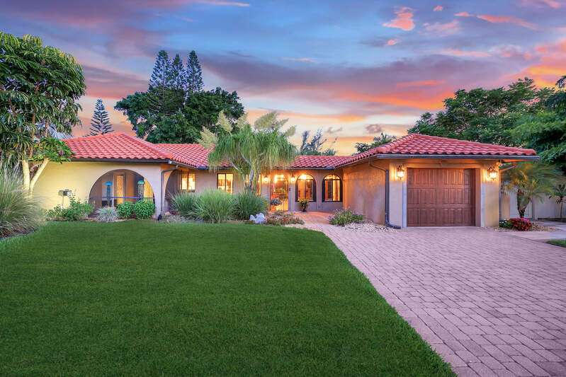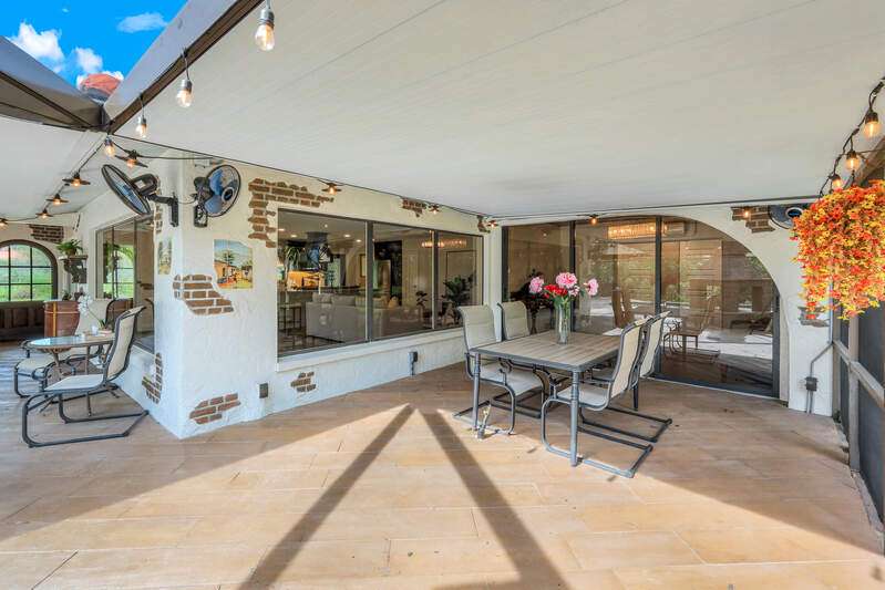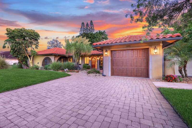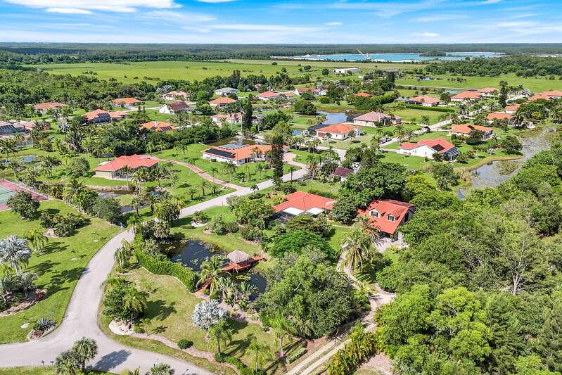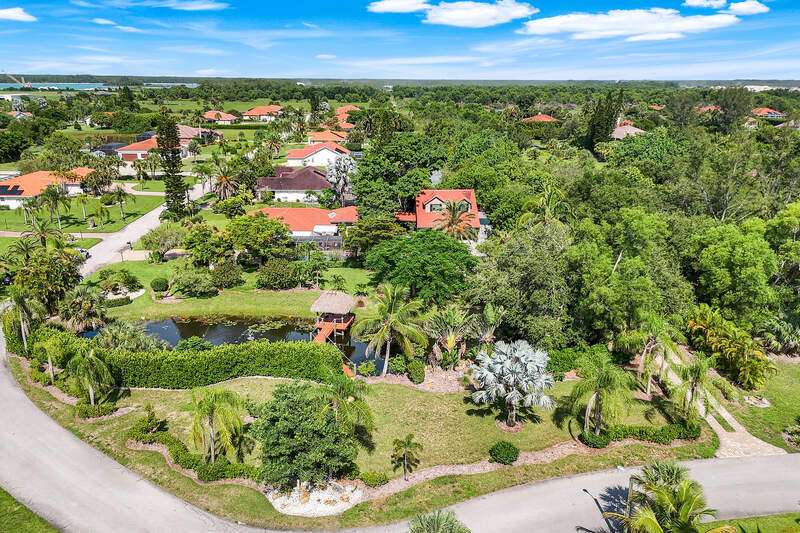 A triumph of timeless design, craftsmanship, and grandeur, this extraordinary ~5,000-square-foot in total Spanish-inspired villa is truly one-of-a-kind. Nestled on 1.54 acres with an additional bonus lot and separate street access, this rare single-family compound spans over 2.5 lush, private acres in the highly desirable Bell Villa-now part of the vibrant Bonita Terra community in the heart of Southwest Florida. Remodeled in recent years, the estate blends privacy, space, and versatility-ideal for those who crave comfort and freedom. Whether you're looking to garden, entertain, work from home, raise a family, or simply relax in your own sanctuary, 12305 Avida Lane delivers it all. The meticulously landscaped grounds unfold like a private oasis: a serene pool with waterfalls and fountains, a pond framed by lush gardens, romantic fountains, and a private tiki hut-perfect for morning coffee or sunset cocktails. The expansive lawn provides space for gatherings and grand entertaining. And just when you think that's all-this home continues to impress. A new oversized, air-conditioned garage with 8-foot doors comfortably fits 3-4 vehicles plus all your toys, and includes an upstairs guest suite and game room-the ultimate escape for fun and relaxation. An attached mother-in-law suite with a full kitchen, private bath, and separate entrance offers income potential or seamless integration into the main living space for multigenerational living. Inside the main home, the gourmet kitchen features quartzite counters, induction cooktop, and ample storage-sure to delight the chef in the family. Enjoy year-round alfresco dining with a fully equipped outdoor kitchen in the screened lanai. The tile roof was replaced in 2019, and the septic and drain field were updated in 2016. The property is a garden lover's dream, with mature fruit trees, and magical landscape lighting throughout the property for stunning twilight ambiance. As a resident of Bonita Terra, you'll also have the option to enjoy resort-style amenities for a nominal fee, including tennis, pickleball, bocce, shuffleboard, two pools, clubhouse, gym, and a ball field. The community comes alive in season with pickleball tournaments, golf cart parades, and social events galore. This estate is more than a home-it's a lifestyle sanctuary waiting for its next chapter.