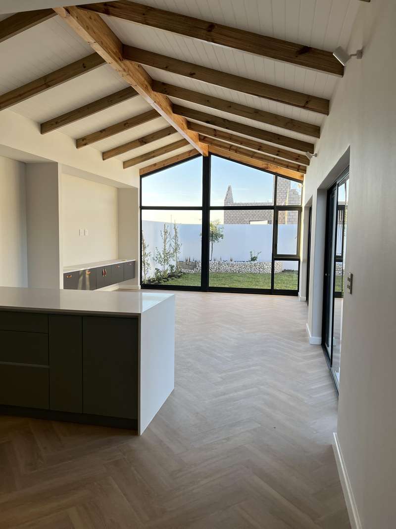 Step into the pinnacle of contemporary elegance with this stunning off-plan 4-bedroom, 3-bathroom double-storey home, designed for those who appreciate luxury, space, and modern sophistication. From the moment you enter, the ?open-plan, double volume layout welcomes you with its seamless flow and an abundance of light pouring in through stunning ?floor-to-ceiling windows. The ultra-modern finishes are complemented by? exquisite lighting features that elevate the ambiance, particularly in the bathrooms and along the staircase, creating a home that is both stylish and inviting. The gourmet kitchen is a chef’s dream, featuring ?top-of-the-line appliances, sleek cabinetry, and a separate scullery for ultimate convenience. The spacious living and dining areas extend effortlessly to the ?covered patio, where a built-in braai area offers the perfect setting for outdoor entertaining. Upstairs, the luxurious master suite boasts a ?walk-in closet and a spa-like en-suite bathroom, while the additional three bedrooms provide ample space for family and guests. Outside, the ??large garden is perfect for relaxation, children’s play, or future landscaping dreams. Completing this spectacular home is a ??double garage, providing secure parking and extra storage. With its impeccable design, high-end finishes, and premium features, this property offers an unparalleled living experience. Secure your dream home today!