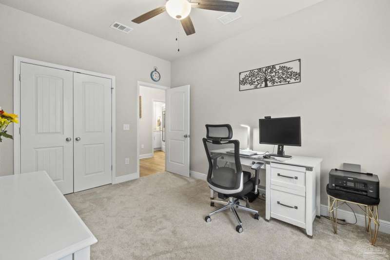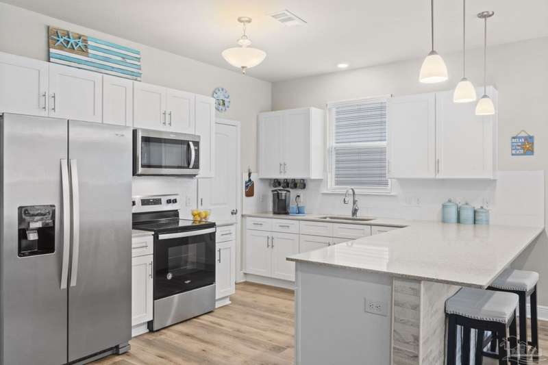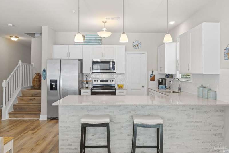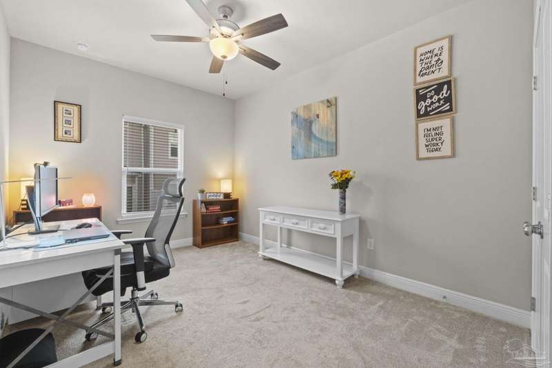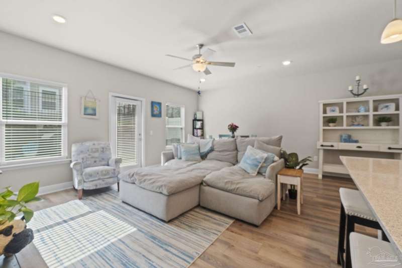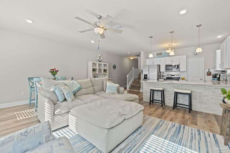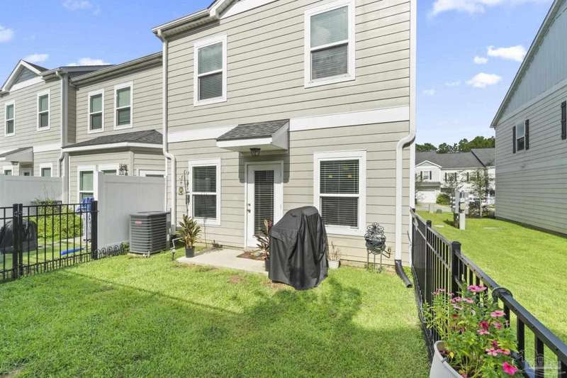 PRICE DROP: $284,999 EASY ACCESS TO NAVY FEDERAL, INTERSTATE AND SHOPPING. Welcome to this bright 3-bed, 2�½-bath end-unit town home in the gated, award-winning Residences at Nature Creek built by a small custom home builder. Enjoy an open concept design with 9' ceilings throughout, granite countertops, a stone-faced island, and a walk-in pantry in the spacious kitchen. The oversized upstairs primary suite features a double vanity, large walk-in shower, and roomy closet, with access to a private upstairs balcony. Two additional bedrooms share a well-appointed full bath. Other highlights include an upstairs laundry room, low-maintenance waterproof flooring, private outdoor patio, and convenient attached garage. Community amenities include a resort-style pool, pavilion with grills, and professionally maintained common areas. Located in West Pensacola, you're minutes from Navy Federal, shopping, dining, healthcare, and Interstate 10 access. Ideal for a lock-and-leave lifestyle. HOA covers landscaping; one-car garage included.
