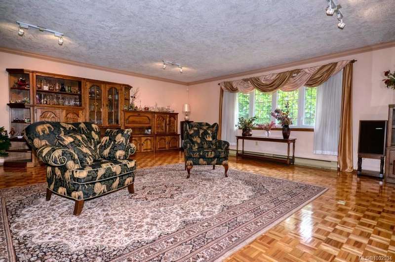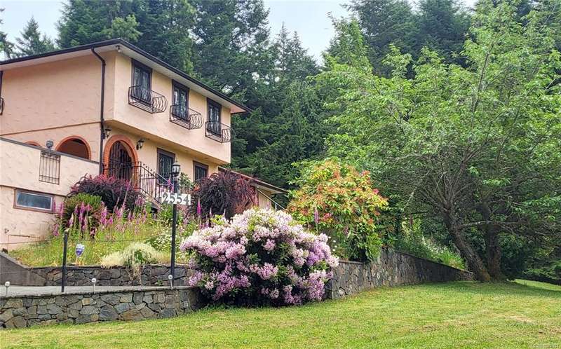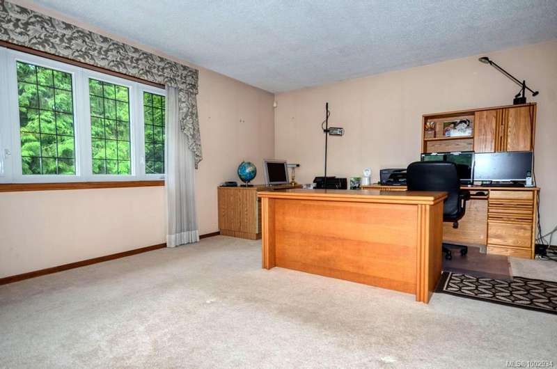 PRICED WELL BELOW ASSESSMENT, EXCELLENT OPPORTUNITY. An attractive custom built home situated on a large sunny 1.23 acre lot in a prime area of the Highlands. This well maintained residence ploffers large spacious rooms throughout, open plan kitchen and family room, 4 to 5 bedrooms, a flexible floor plan, large easily accessible decks and patios perfect for both family life and entertaining. There is a large workshop, a double car garage, plus a separate single car garage. Also of note is the dedicated RV/Fifth Wheel parking spot with electricity and a pump out. The grounds encompass rolling lawns, many trees, and other decorative shrubs. A super location with lots of room for a family looking for a quiet rural life style. Close to downtown Victoria, only 10-15 min to Langford and 10 minutes to VGH Hospital.