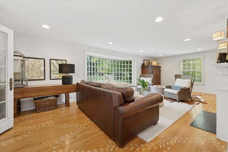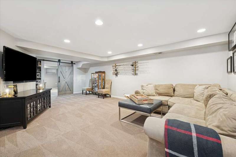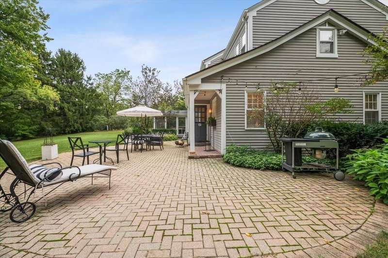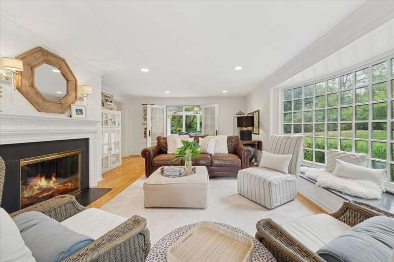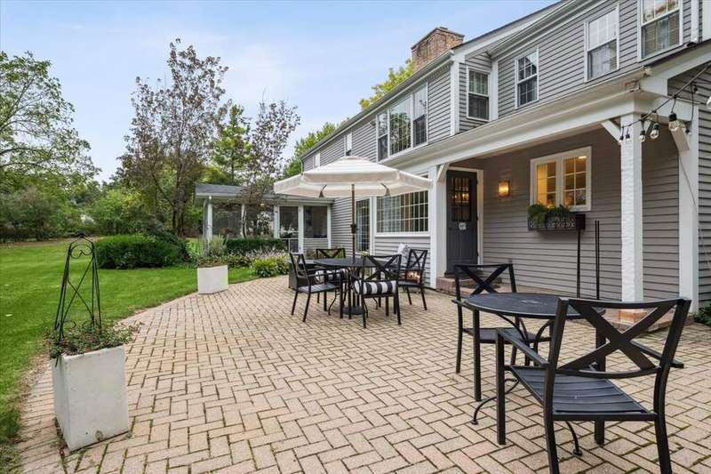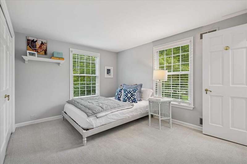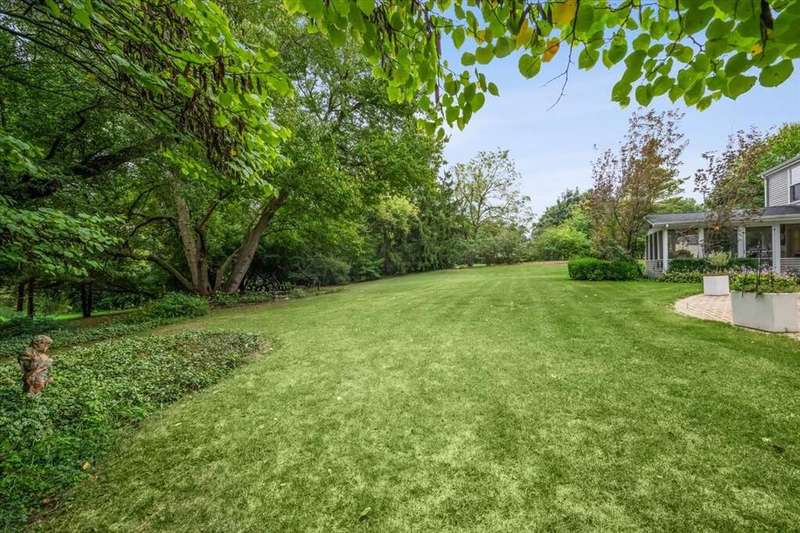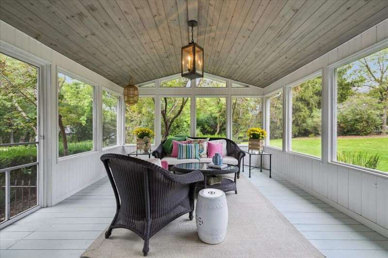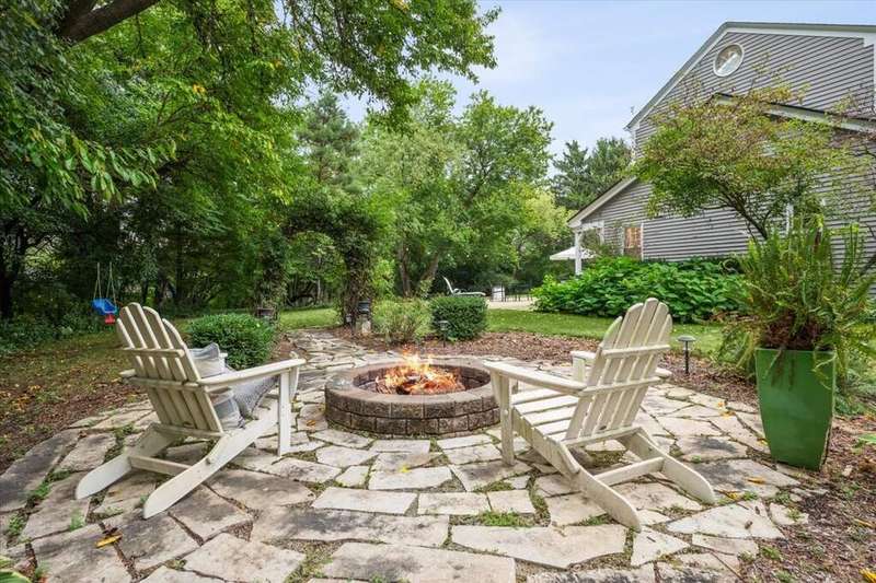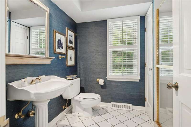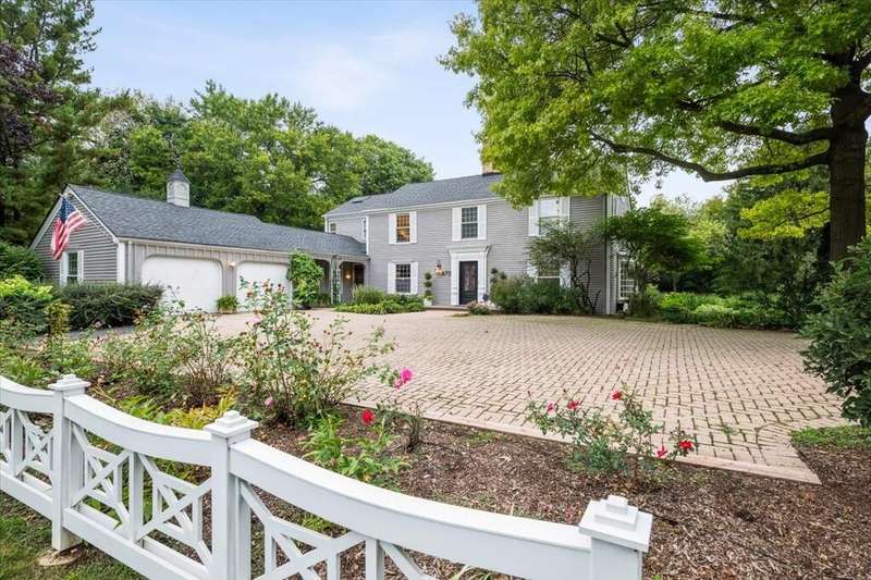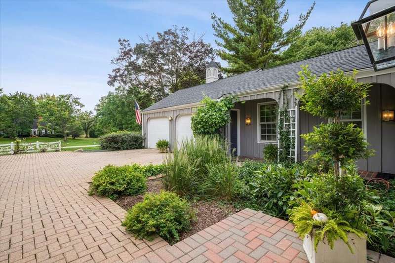Set high on a hill on almost a 1.5 acre lot and surrounded by beautifully landscaped perennial gardens, this impeccable residence blends timeless charm with modern updates. From the moment you arrive, you'll notice the attention to detail: a new asphalt (2023) and brick paver driveway, a custom front fence (2024) and newer front steps and front door (1-2 years old) welcome you inside. The foyer sets the tone with its porcelain tile floor, beautiful moldings and a graceful, curved staircase with hardwood treads. Upstairs, the primary suite is a true retreat featuring a sitting room, recessed lighting and oversized his/hers walk-in closets. French doors lead to a luxurious primary bath with newer lighting, double sinks, a separate shower and a jacuzzi-style tub. Two additional oversized bedrooms provide abundant closet space, one with a private ensuite bath. It's rare to find a home with 3 full baths on the second level - the hall bath has double sinks and a tub/shower combo. An exposed brick accent wall completes the second level. On the main level, you'll find spacious living and entertaining areas. The living room offers a wood-burning fireplace, crown molding, recessed lighting and a curved window with a charming window seat. The family room boasts a second large fireplace, oversized windows flooding the space with natural light and is open to the recently remodeled kitchen. The chef's kitchen (updated approximately 2 years ago) features quartz counters, white cabinetry, subway tile backsplash, Sub-Zero refrigerator, Whirlpool double ovens, KitchenAid dishwasher, Dacor gas cooktop, white farm sink, deep pantry, brick wall detail and new lighting. The formal dining room is located just outside of the kitchen. A Dutch door in the eat-in kitchen leads to the brick paver patio. A screened porch with beadboard ceiling, updated lighting and electricity extends your living space outdoors and overlooks a neighboring pond (not part of property). Almost all the main level has gleaming hardwood flooring with the living room boasting an elegantly painted hardwood floor. The layout lends itself to being perfect for hosting holidays and parties with the living room flowing seamlessly into the screened porch. A main level bedroom with distressed tile floor and closet with organizer could serve as a guest suite, office or first-floor primary. A full bath with walk-in shower is conveniently nearby. The partially finished English basement offers flexible living space with a carpeted rec room, game room with wine cellar and fridge, barn-door entry to a tiled bonus room (currently being used as a bedroom but could be an office or workout area) and a large laundry area with LG washer/dryer and utility sink. Additional highlights include: Newer carpet on second level - approximately 5 years old; 2-car garage; newer asphalt roof - approximately 7 years old; invisible fence; lawn irrigation system; 3 sump pumps (one of which is newer and sealed with a battery backup system and alarm); water heater less than a year old; extensive storage space including a cedar closet; all copper piping replaced with PVC and a reverse osmosis system. This immaculate home seamlessly combines elegance, comfort and modern updates in a picturesque setting.