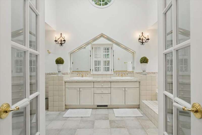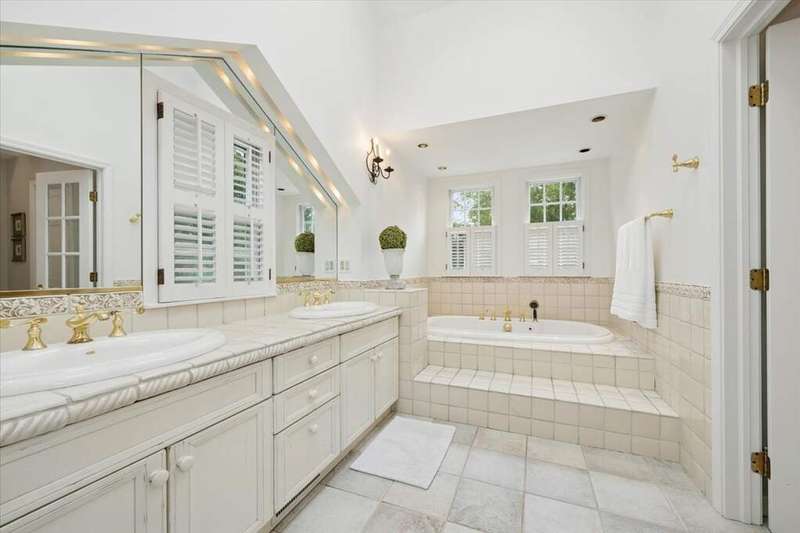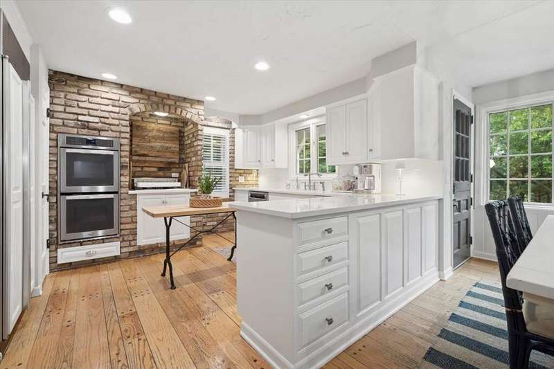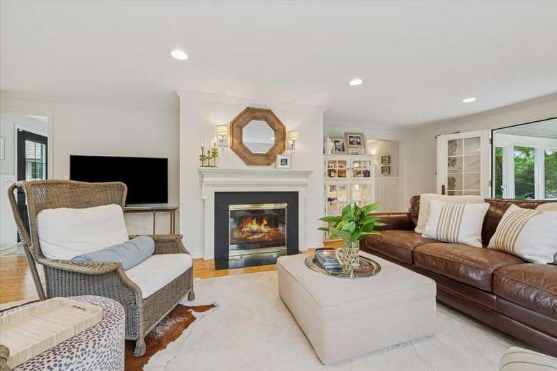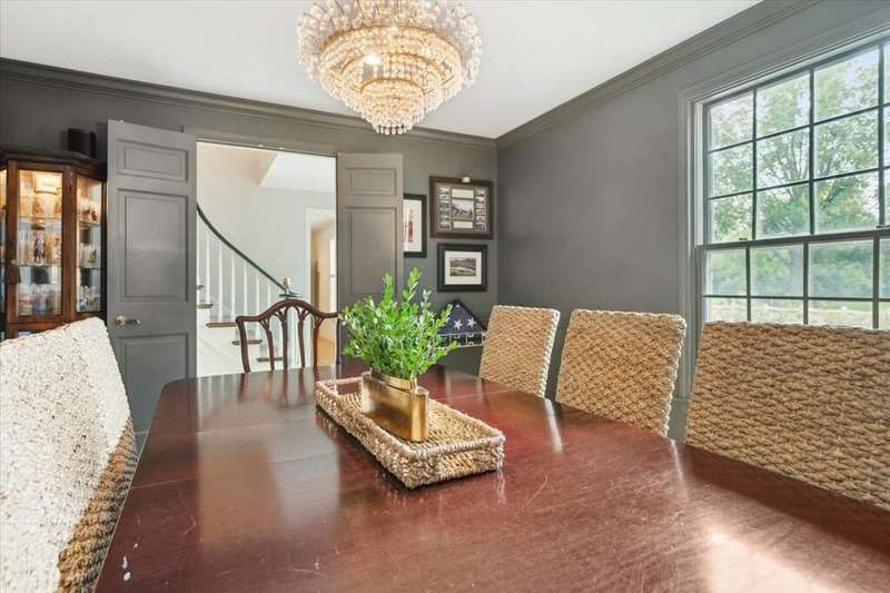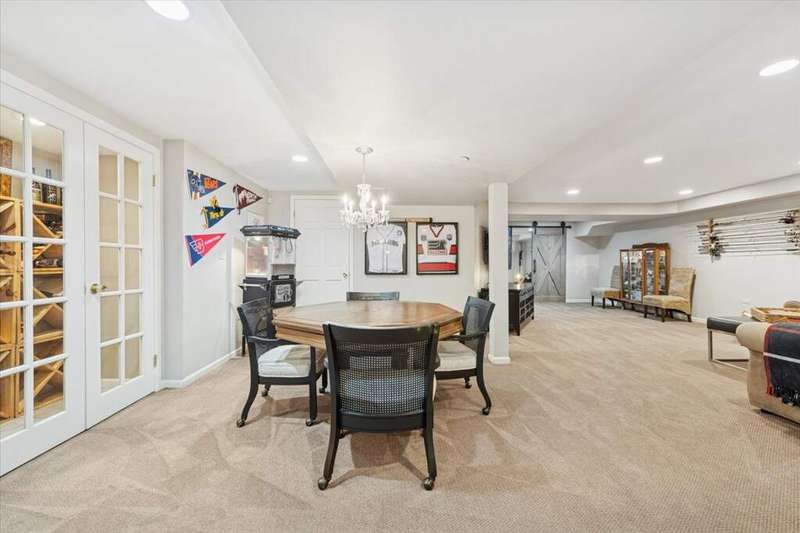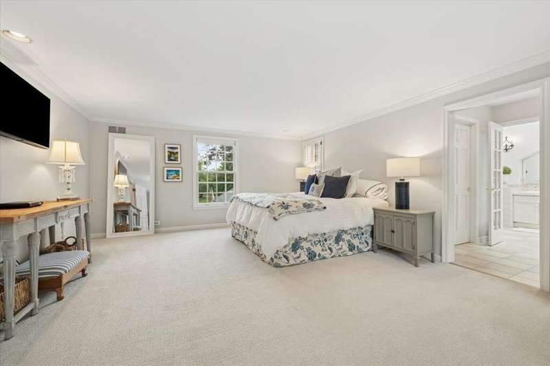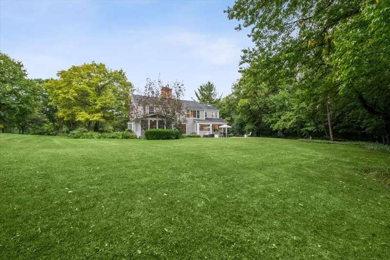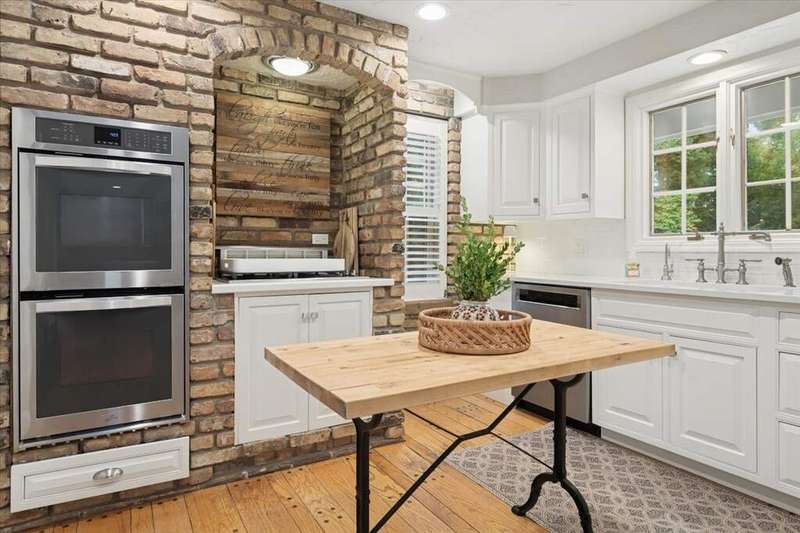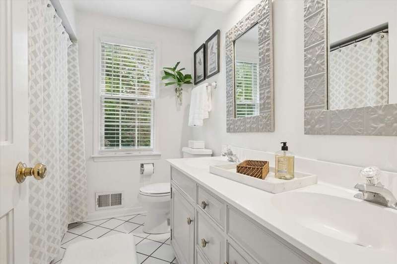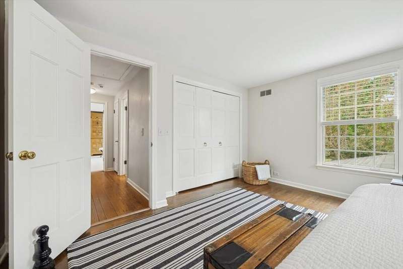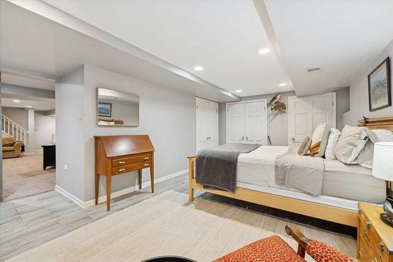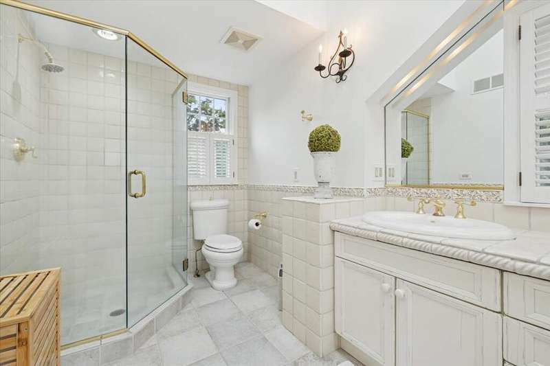 Set high on a hill on almost a 1.5 acre lot and surrounded by beautifully landscaped perennial gardens, this impeccable residence blends timeless charm with modern updates. From the moment you arrive, you'll notice the attention to detail: a new asphalt (2023) and brick paver driveway, a custom front fence (2024) and newer front steps and front door (1-2 years old) welcome you inside. The foyer sets the tone with its porcelain tile floor, beautiful moldings and a graceful, curved staircase with hardwood treads. Upstairs, the primary suite is a true retreat featuring a sitting room, recessed lighting and oversized his/hers walk-in closets. French doors lead to a luxurious primary bath with newer lighting, double sinks, a separate shower and a jacuzzi-style tub. Two additional oversized bedrooms provide abundant closet space, one with a private ensuite bath. It's rare to find a home with 3 full baths on the second level - the hall bath has double sinks and a tub/shower combo. An exposed brick accent wall completes the second level. On the main level, you'll find spacious living and entertaining areas. The living room offers a wood-burning fireplace, crown molding, recessed lighting and a curved window with a charming window seat. The family room boasts a second large fireplace, oversized windows flooding the space with natural light and is open to the recently remodeled kitchen. The chef's kitchen (updated approximately 2 years ago) features quartz counters, white cabinetry, subway tile backsplash, Sub-Zero refrigerator, Whirlpool double ovens, KitchenAid dishwasher, Dacor gas cooktop, white farm sink, deep pantry, brick wall detail and new lighting. The formal dining room is located just outside of the kitchen. A Dutch door in the eat-in kitchen leads to the brick paver patio. A screened porch with beadboard ceiling, updated lighting and electricity extends your living space outdoors and overlooks a neighboring pond (not part of property). Almost all the main level has gleaming hardwood flooring with the living room boasting an elegantly painted hardwood floor. The layout lends itself to being perfect for hosting holidays and parties with the living room flowing seamlessly into the screened porch. A main level bedroom with distressed tile floor and closet with organizer could serve as a guest suite, office or first-floor primary. A full bath with walk-in shower is conveniently nearby. The partially finished English basement offers flexible living space with a carpeted rec room, game room with wine cellar and fridge, barn-door entry to a tiled bonus room (currently being used as a bedroom but could be an office or workout area) and a large laundry area with LG washer/dryer and utility sink. Additional highlights include: Newer carpet on second level - approximately 5 years old; 2-car garage; newer asphalt roof - approximately 7 years old; invisible fence; lawn irrigation system; 3 sump pumps (one of which is newer and sealed with a battery backup system and alarm); water heater less than a year old; extensive storage space including a cedar closet; all copper piping replaced with PVC and a reverse osmosis system. This immaculate home seamlessly combines elegance, comfort and modern updates in a picturesque setting.