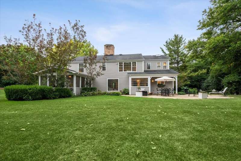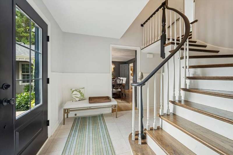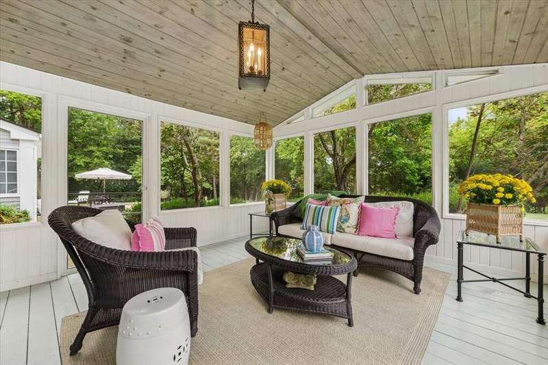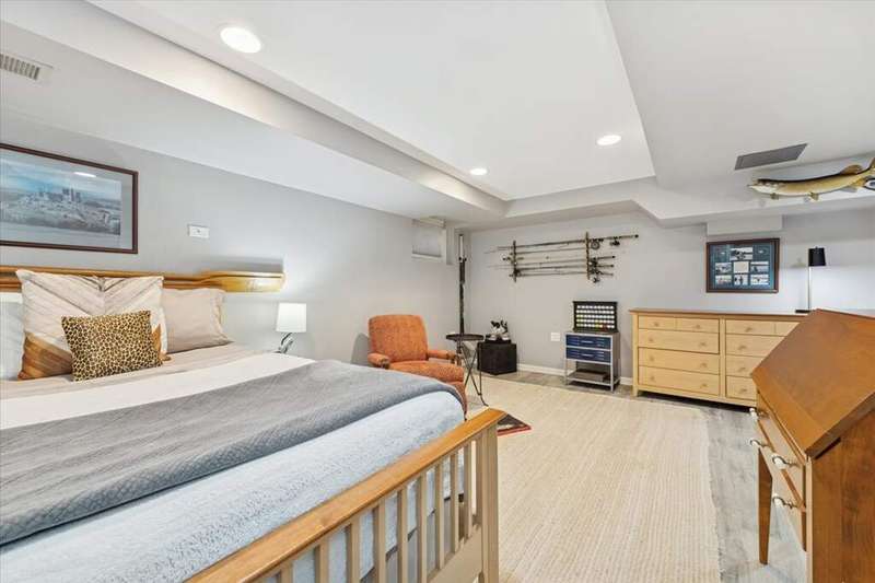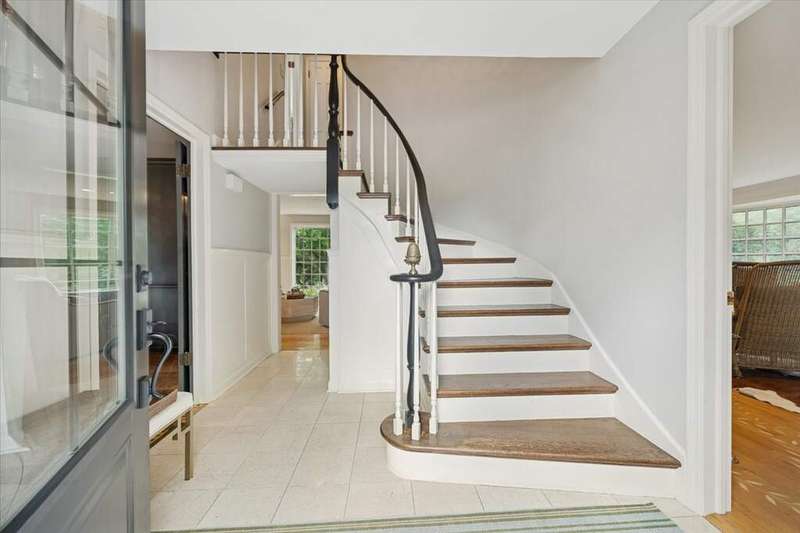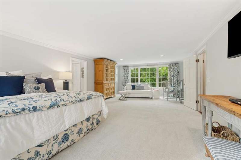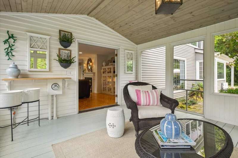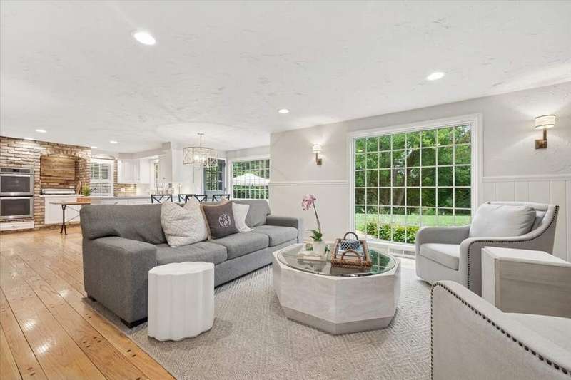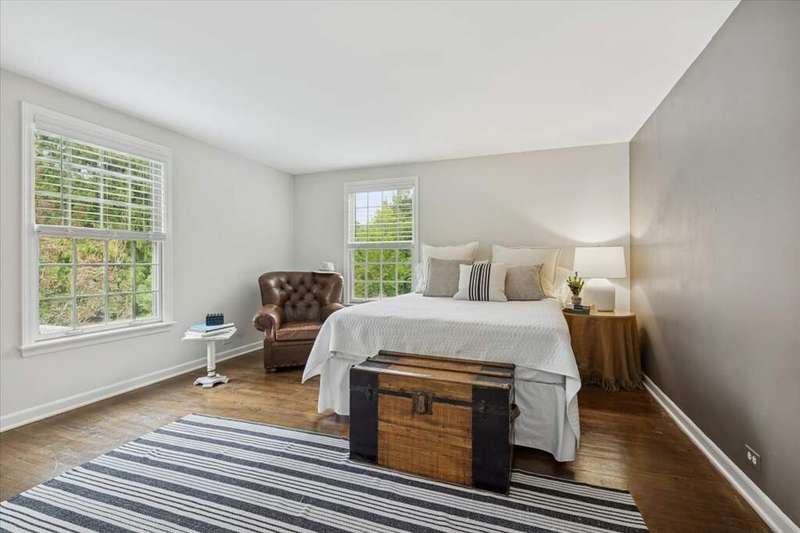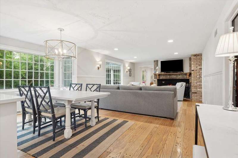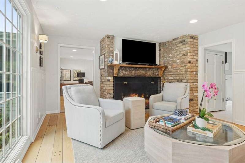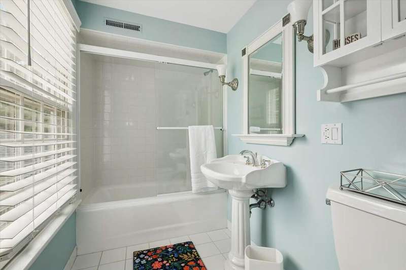 Set high on a hill on almost a 1.5 acre lot and surrounded by beautifully landscaped perennial gardens, this impeccable residence blends timeless charm with modern updates. From the moment you arrive, you'll notice the attention to detail: a new asphalt (2023) and brick paver driveway, a custom front fence (2024) and newer front steps and front door (1-2 years old) welcome you inside. The foyer sets the tone with its porcelain tile floor, beautiful moldings and a graceful, curved staircase with hardwood treads. Upstairs, the primary suite is a true retreat featuring a sitting room, recessed lighting and oversized his/hers walk-in closets. French doors lead to a luxurious primary bath with newer lighting, double sinks, a separate shower and a jacuzzi-style tub. Two additional oversized bedrooms provide abundant closet space, one with a private ensuite bath. It's rare to find a home with 3 full baths on the second level - the hall bath has double sinks and a tub/shower combo. An exposed brick accent wall completes the second level. On the main level, you'll find spacious living and entertaining areas. The living room offers a wood-burning fireplace, crown molding, recessed lighting and a curved window with a charming window seat. The family room boasts a second large fireplace, oversized windows flooding the space with natural light and is open to the recently remodeled kitchen. The chef's kitchen (updated approximately 2 years ago) features quartz counters, white cabinetry, subway tile backsplash, Sub-Zero refrigerator, Whirlpool double ovens, KitchenAid dishwasher, Dacor gas cooktop, white farm sink, deep pantry, brick wall detail and new lighting. The formal dining room is located just outside of the kitchen. A Dutch door in the eat-in kitchen leads to the brick paver patio. A screened porch with beadboard ceiling, updated lighting and electricity extends your living space outdoors and overlooks a neighboring pond (not part of property). Almost all the main level has gleaming hardwood flooring with the living room boasting an elegantly painted hardwood floor. The layout lends itself to being perfect for hosting holidays and parties with the living room flowing seamlessly into the screened porch. A main level bedroom with distressed tile floor and closet with organizer could serve as a guest suite, office or first-floor primary. A full bath with walk-in shower is conveniently nearby. The partially finished English basement offers flexible living space with a carpeted rec room, game room with wine cellar and fridge, barn-door entry to a tiled bonus room (currently being used as a bedroom but could be an office or workout area) and a large laundry area with LG washer/dryer and utility sink. Additional highlights include: Newer carpet on second level - approximately 5 years old; 2-car garage; newer asphalt roof - approximately 7 years old; invisible fence; lawn irrigation system; 3 sump pumps (one of which is newer and sealed with a battery backup system and alarm); water heater less than a year old; extensive storage space including a cedar closet; all copper piping replaced with PVC and a reverse osmosis system. This immaculate home seamlessly combines elegance, comfort and modern updates in a picturesque setting.