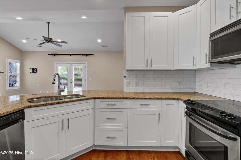 Welcome to this delightful 3 bedroom, 2 bath home in the charming Shell Road Village neighborhood--just minutes from Wrightsville Beach, shopping, dining, medical, and fun! Low maintenance living with HOA maintained yard, trash & mailbox. This inviting 1 level living split floorplan features hardwood floors throughout, tiled baths, and 9-foot ceilings that enhance the open, airy feel. Enjoy thoughtful touches like dimmer switches, plantation shutters in nearly every room, and nice accents. The spacious kitchen includes granite countertops, stainless steel appliances, tile backsplash, walk-in pantry, can lighting, and an eat-at bar that flows into the open living and dining areas. Cozy up by the gas fireplace or step out onto the newly built, oversized back deck--also accessible from the primary suite. The luxurious owner's retreat features a walk-in closet with built-ins, Bluetooth-enabled speaker, a tiled walk-in shower & separate jetted tub. All appliances convey, including stainless-steel front-load washer & dryer. Other special features include encapsulated crawlspace with dehumidifier & sump pump, security system, irrigation system, and termite bond. Relax on the large covered front porch and enjoy the peaceful setting of this tucked-away gem.