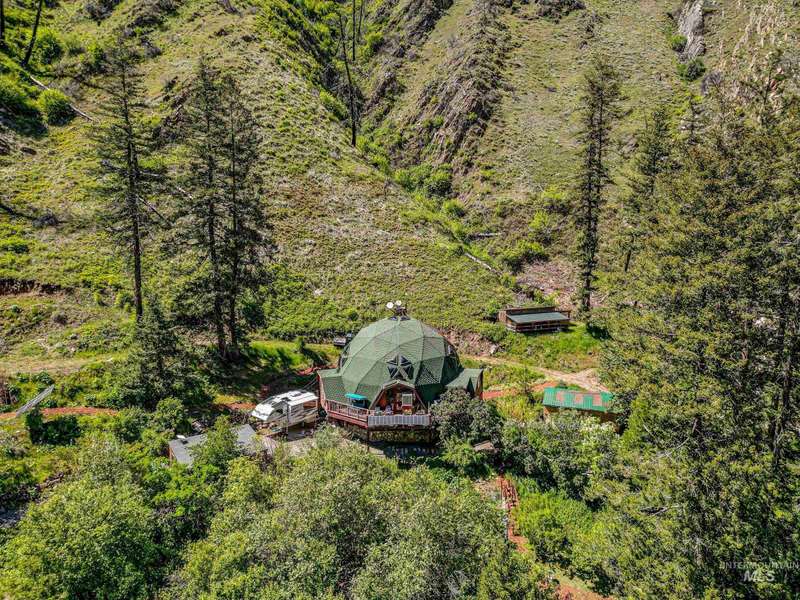 This off-grid geodesic dome is a testament to sustainable living & harmonious integration with the environment. Its location in a secluded canyon offers unparalleled peace & tranquility, surrounded by breathtaking views. Equipped with solar panels, generator, batteries, & backup inverters, this property ensures that you have all the power you need throughout the year. Gardens on the property provide the opportunity for fresh produce, plus Hunting/Fishing add to the independent lifestyle. The interior of the dome is thoughtfully designed with custom built-ins & appliances, creating a space that is both functional and stylish. The wood stove & hydronic heat provide warmth & coziness during the colder months. Step outside onto the deck & immerse yourself in the beauty of the surrounding canyon. Living off-grid allows you to embrace the serenity & freedom that comes with being in harmony with nature. Don't miss the opportunity to experience the joys of sustainable living on this one-of-a-kind property
