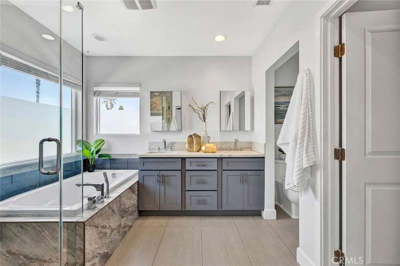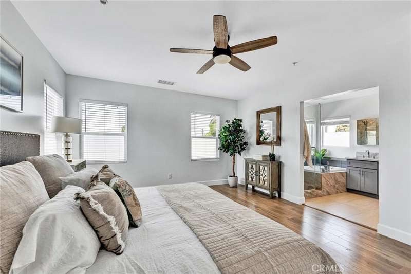 Nestled in an exclusive small enclave of just three newly built detached homes, 8196 18th Street offers luxury living, just steps from Westminster's Liberty Park This stunning 4 bedroom, 3 bathroom residence (including one downstairs bedroom, currently an office, and bath) and spans 2,105 square feet and features a finished 2-car garage plus a full 2-car driveway. Sophisticated architectural details and expert craftsmanship is evident throughout this beautiful home with its open concept floorplan, high ceilings, an abundance of natural light, central A/C, and upscale finishes including wood laminate and designer marble-type tile flooring, dual pane windows, LED recessed lighting, ceiling fans, quartz countertops, self-closing cabinetry, raised panel interior doors, and striking light fixtures. hand-crafted wood and wrought iron staircase railings, and a chef's dream kitchen complete with center island with seating, chic designer tile backsplash, and stainless appliances. The open layout seamlessly connects the kitchen to the living and dining areas, creating a harmonious flow that's ideal for both entertaining and everyday living. A French door opens to the wrap-around patio, ideal for outdoor dining and barbecues. Upstairs there is a loft with a desk niche and a cat walk with wrought iron railing that connects all the rooms and is open to the living room below. with the wrought iron railing. The luxurious primary suite features a large walk-in closet and a spa-style bathroom with dual sinks, privacy toilet, a jetted soaking tub, and separate walk-in shower with frameless glass surround. 2 additional bedrooms with mirrored closets, a guest bath with tub/shower combo, and an oversized laundry room with cabinets and utility sink complete the upper level. It boasts lovely curb appeal with stacked stone siding, tile roof, concrete planters with beautiful foliage, and beautiful walkway through the common area. Though classified as a detached condo, this home is truly a luxurious, highly desired single family home offering refined, turnkey living close to shopping, dining, schools, parks, and the heart of Little Saigon.