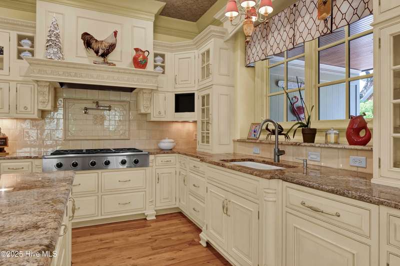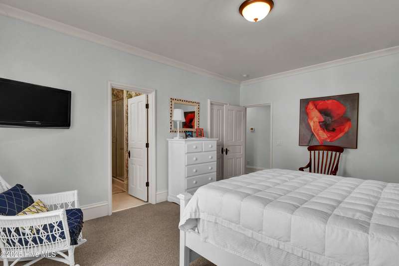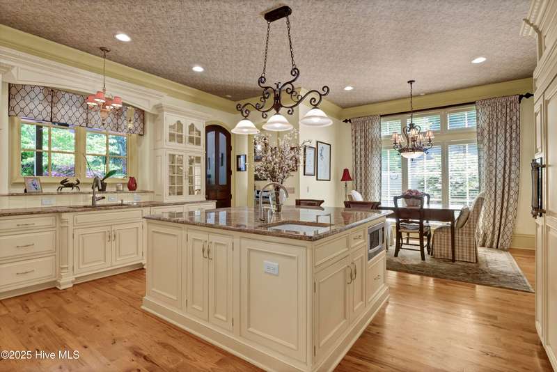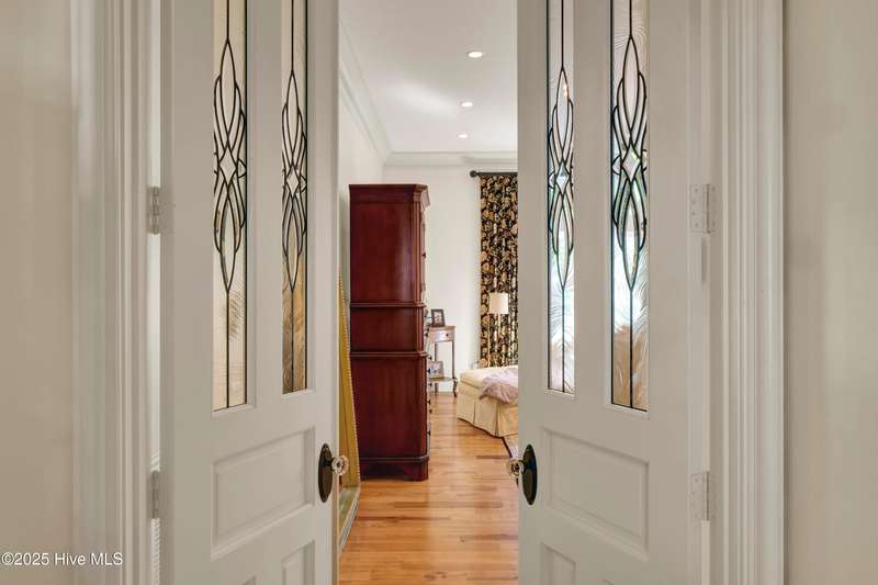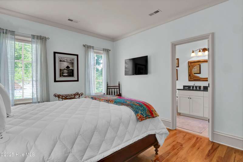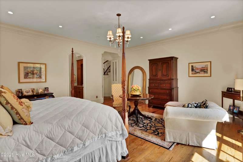 Bel Arbor is one of Wilmington's best-kept secrets -- a secluded, luxury community tucked away just minutes from Wrightsville Beach, Airlie Gardens, and premier Intracoastal Waterway dining. Enjoy the ease of coastal living--just a walk or short bike ride to beach days, waterfront bites, and local favorites. Enjoy a peaceful atmosphere where coastal breezes and the scent of salt air are part of everyday life outside your door.Come experience this beautifully crafted residence which exudes timeless elegance and thoughtful design. Step into a grand foyer featuring a sweeping staircase that sets the tone for the sophisticated design throughout. Hickory floors, extensive crown and trim molding, and solid, one-of-a-kind custom doors add richness and craftsmanship to every room. The custom kitchen is a chef's dream, complete with a spacious island, double ovens, a butler's pantry, and top-tier finishes. Enjoy effortless entertaining with built-in surround sound and seamless indoor-outdoor living that extends to a charming side porch--perfect for unwinding or hosting intimate gatherings. The massive master suite is a true retreat, highlighted by an oversized walk-in closet and a spa-inspired bathroom. The second level features 3 en suite bedrooms and a (18.6x17.2) living area which can be used as a family room, game room, or a fifth bedroom. Additional luxury touches include a 3-car garage, gas generator for peace of mind, and a thoughtfully designed floor plan that balances comfort with elegance.