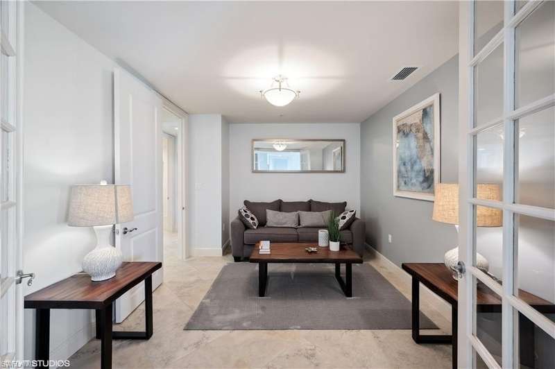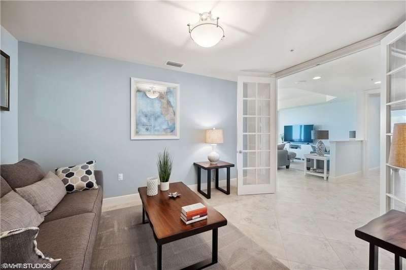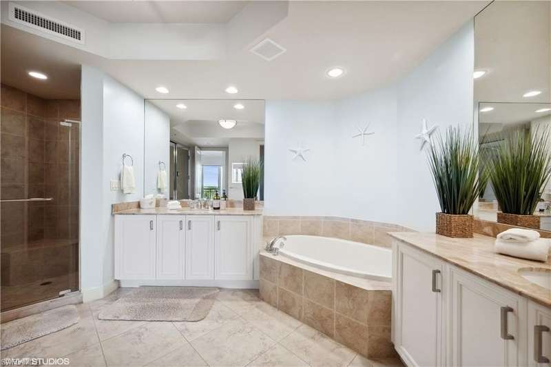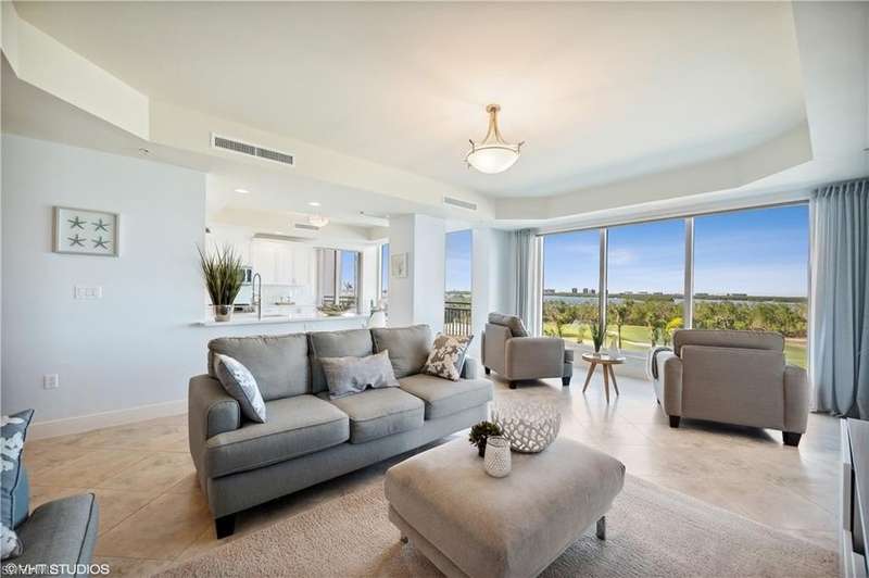 FURNISHED ANNUAL RENTAL. Gorgeous views from this spacious 2 bedrooms plus den, 2 bath well-appointed home with Recently remodeled fully equipped kitchen. Master bedroom features King bed, fabulous views, walk-in closet, and ensuite bathroom with soaking tub and walk-in shower. Guest bedroom with balcony, queen bed, and guest bathroom close by. Den with sleeper sofa. Views from every room of the golf course, bay, and gulf. Enjoy the great amenities that Bonita Bay has to offer, along with the Esperia building Amenities such as a resort style, screened in cabana, grill area, state of the art fitness center and club room. Enjoy the ten miles of walking/bike paths or take the shuttle to the private park on Bonita Beach for a day of sun and surf. Riverwalk Park offers lighted tennis courts, fishing piers, and children's playground. Estero Park offers a pavilion, picnic area, butterfly park and boardwalk to Estero Bay. Beach Club can be accessed by tram provided by Bonita Bay Beach Club. This unit is close to the Promenade Shopping Center for upscale shopping and dining.