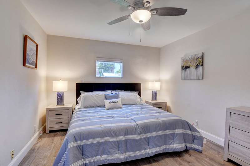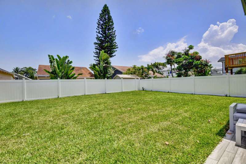 Welcome to your dream home all under a new roof and Impact Windows throughout the home! 3BR/2BA FULLY FURNISHED, Turnkey, Spectacular Location with NO HOA. Walk to Wholefoods & Shopping. Minutes away from Downtown Delray and Beaches. Available for Seasonal or Annual Rental. This stunning Resort property has undergone a complete transformation and boasts all the modern amenities you've been searching for. Situated on a generous plot, the privacy fence surrounding the backyard ensures tranquility and seclusion. Step inside and be captivated by the inviting ambiance of the open floor plan, highlighted by a vaulted cedar plank ceiling. The Brand New kitchen, is a chef's delight with a large island adorned with luxurious quartz countertops, equipped with top-of-the-line