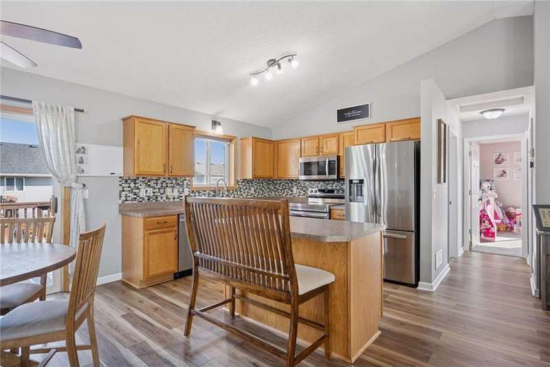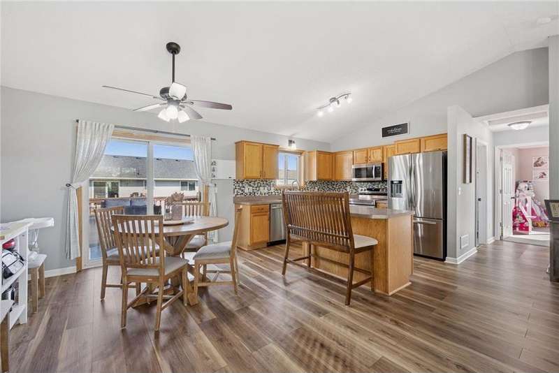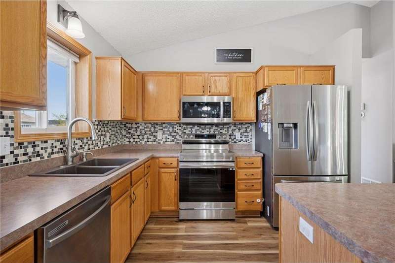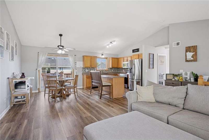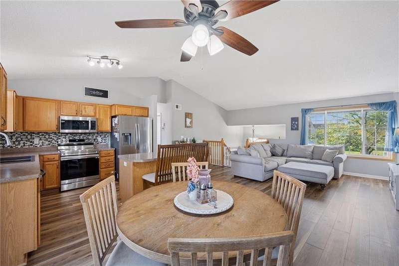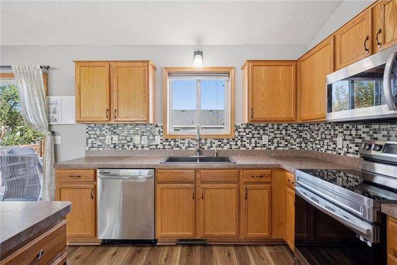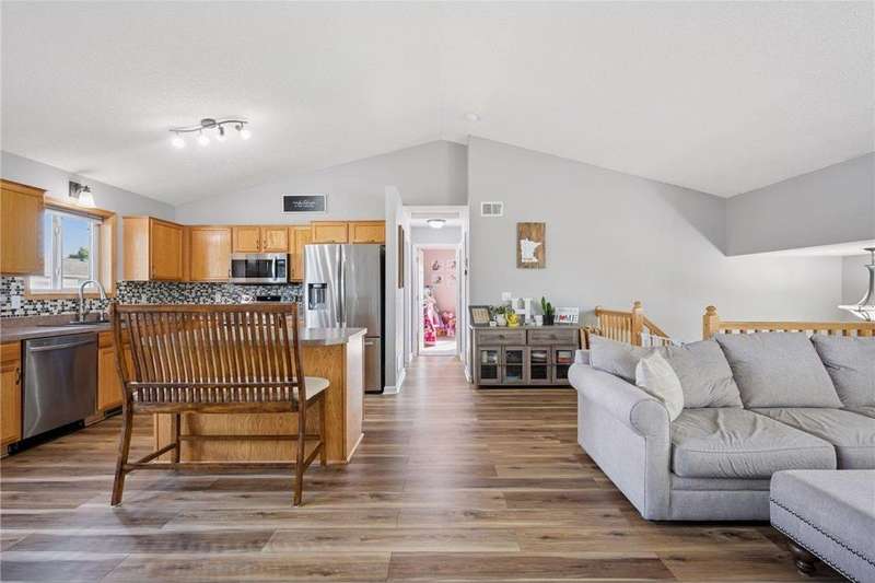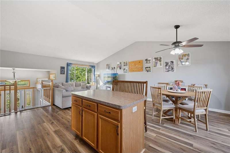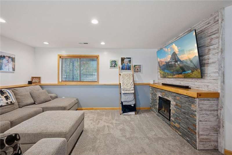 This home is beautifully decorated featuring a spacious entryway and vaulted ceilings in the living room. The kitchen offers abundant cabinetry, a central island, and an informal dining area that opens to a deck and fully fenced backyard—perfect for entertaining or relaxing outdoors. Upstairs, you'll find two comfortable bedrooms and a full bathroom. The lower level boasts a cozy family room with a fireplace, a dedicated workout space, an additional bedroom, and a convenient ¾ bath. Outside, a side shed provides extra storage, and there's additional parking space. Convenient to Highway 94. New roof installed and inspected in July 2020 ? New carpet installed upstairs in March 2021 ? Basement finished in May 2021 ? New stainless steel appliances in November 2022 ? New luxury vinyl flooring throughout upstairs in May 2023 ? New panel doors upstairs in May 2025 ? New mulch added in July 2025