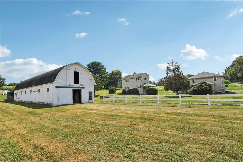 Gorgeous scenic views on this 32.66 acre parcel with 2-bedroom Colonial home, 2-bedroom ranch home with 2-car integral garage, duplex with storefront that was a grocery store many decades ago and a 7-stall horse barn with tack room! FREE gas to a dwelling of your choice! Beautiful pasture for your barnyard friends! Kiski Area School District.