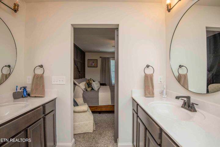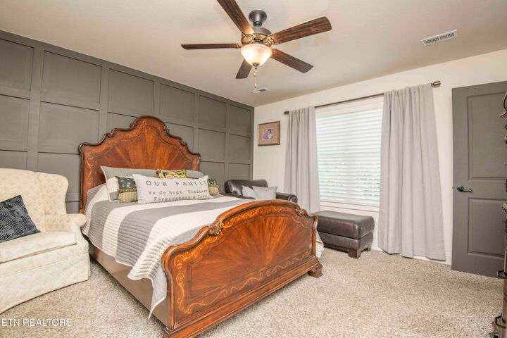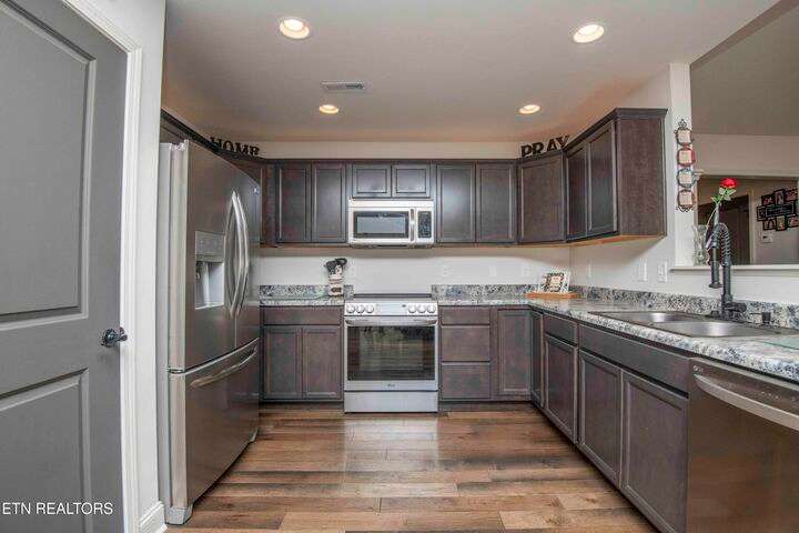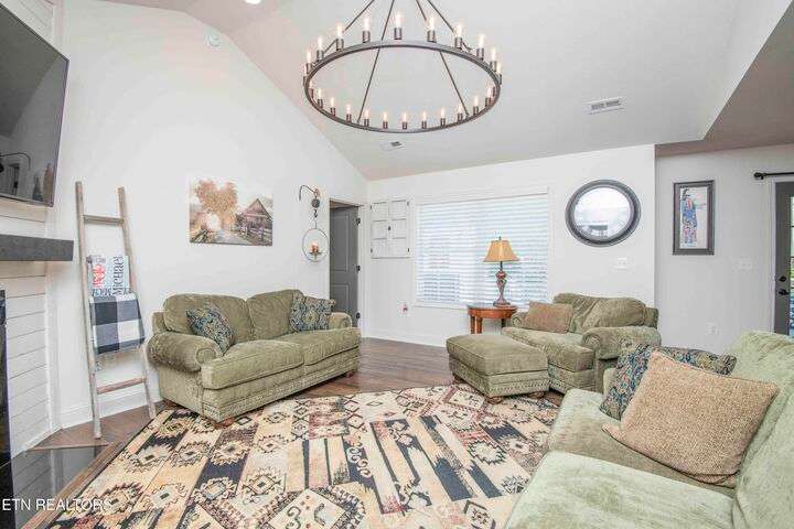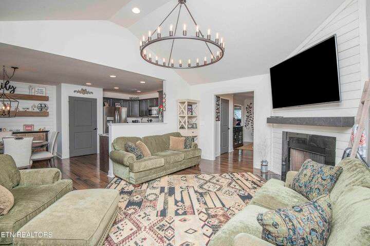 Move-In Ready Ranch with Designer Finishes Throughout! This stunning, better-than-new ranch home is filled with high-end upgrades and thoughtful touches. Freshly painted and featuring a desirable split-bedroom layout, the open-concept floor plan seamlessly connects the kitchen, dining, and living areas—perfect for entertaining. The living room showcases a beautiful shiplap fireplace and upgraded light fixtures, while the dining area includes stylish floating shelves. The kitchen boasts upgraded appliances and modern finishes. Elegant board and batten wall treatments add charm to the hallway and guest bedroom. The spacious primary suite features a custom wainscoting accent wall, sliding barn doors, a walk-in closet, and an en-suite bath with dual vanities. A versatile bonus room provides additional space for a playroom, home theater, office, or guest suite. Step outside to your backyard retreat, complete with a large deck, outdoor fireplace with firewood boxes, cozy café lights, and a separate fire pit area—perfect for relaxing or entertaining. Neighborhood amenities include a pool, playground, basketball court, picnic area with BBQ grills, walking trails, sidewalks, and weekly food truck visits. Conveniently located near shopping, restaurants, and zoned for Brickey Elementary, Powell Middle, and Powell High School. Prepare to fall in love with this beautifully designed, inviting home!