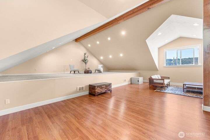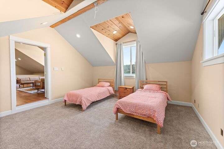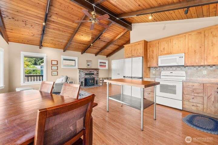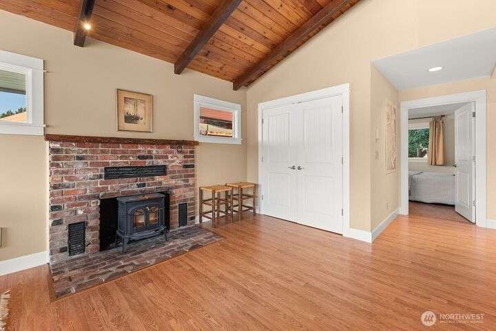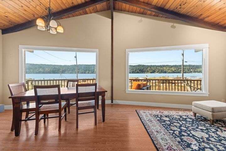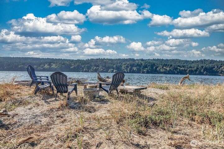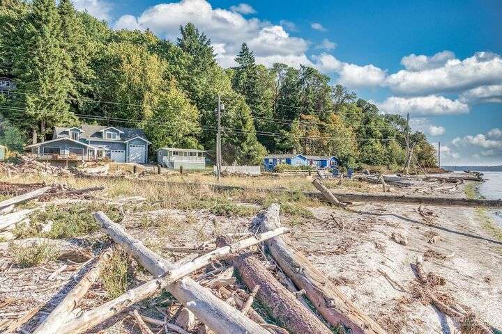 Fantastic opportunity to own a substantial home on 75’ low-bank waterfront with tidelands on a sandy, west-facing beach for less than $1 million! This classic 2,000 sq. ft. house has many modern elements—a new $70,000 septic system, two-car attached garage/ shop, 3 bedrooms, 1.75 baths, and stylish updates throughout. From the deck, look over dune grass to the outer harbor, a campfire circle on the water’s edge, seals, otters, and other sea life, as well as Tacoma city lights. Enjoy the quiet of a small community on a dead-end road; experience watching the sailboats rounding the Manzanita mark, endless beach combing, paddle boarding, kayaking—the best year around entertainment ever!
