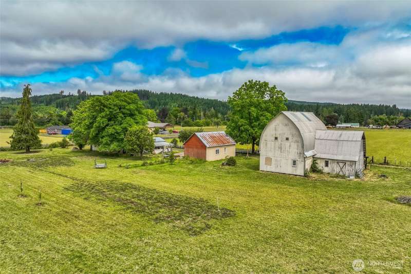 Mini Farm Opportunity? Homesteading? Gorgeous, level 5 acre country property with OUTBUILDINGS that will make you SWOON! Check out the interior photo of the picturesque BARN-straight out of a country music video. Imagine the venue possibilities here-and it includes two lofts and metal roof. Brand New 3 bed Septic System in 2024. Farm house is neat as a pin, 2 beds 1 bath with vintage charm throughout. Two outbuildings used as garages/shop area, both have cement floors and metal roofs- all dry,no leaks. Nice fruit cellar-for preserving the harvest from mature fruit trees and the many raspberry, marionberry, loganberry and blackberry plants.This stunning property is right across from access to Willapa Hills Trails for lots of adventures.