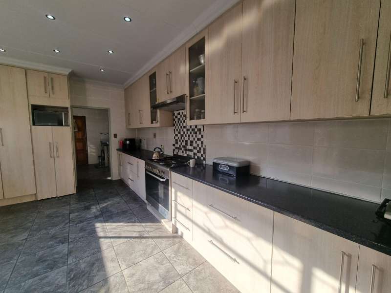 This well-appointed home offers the perfect blend of comfort, functionality, and style. Located on a desirable corner stand, it boasts the following features: 4 Spacious Bedrooms all with ample cupboard space 2 Bathrooms with the main on suite plus Guest Toilet Dedicated Study/Office Space – ideal for working from home Generous Living Area for family relaxation Neat Kitchen with Gas Stove Separate Scullery & Laundry area Entertainment Area – perfect for hosting guests Double Garage plus Carport for additional parking Tea Garden – a serene spot for morning coffee or afternoon tea Solar Power System – reduce your electricity bills Jojo and pump in the courtyard Electric Fence – for added security Don’t miss out on this well-equipped and secure home, perfect for modern family living and entertaining.