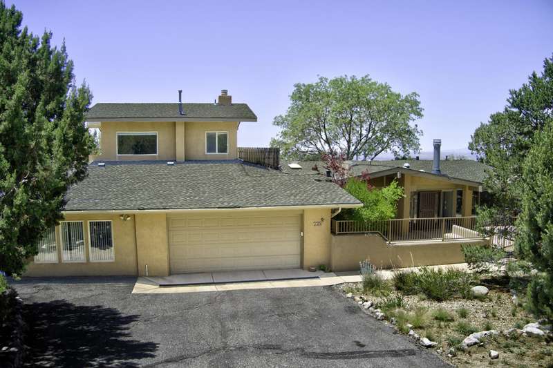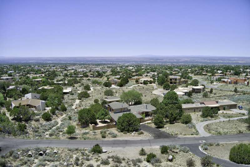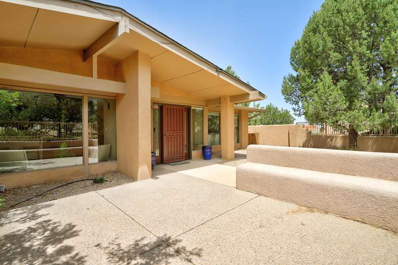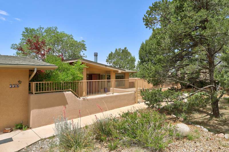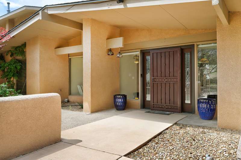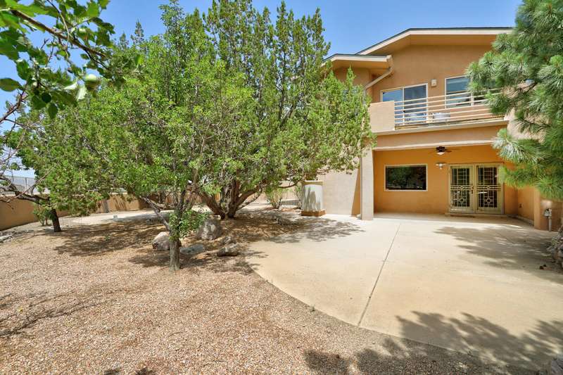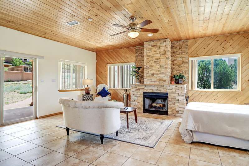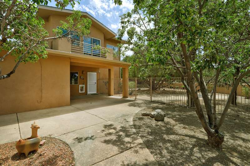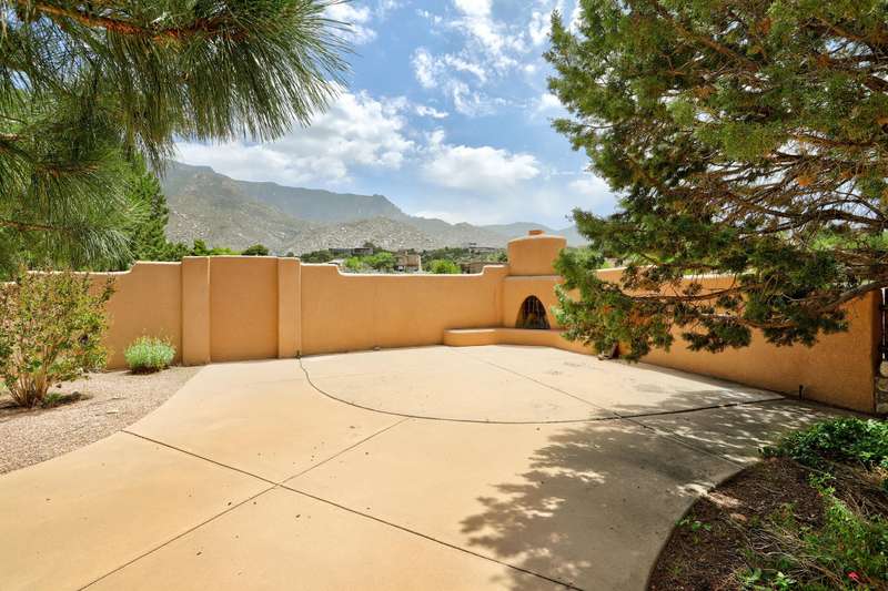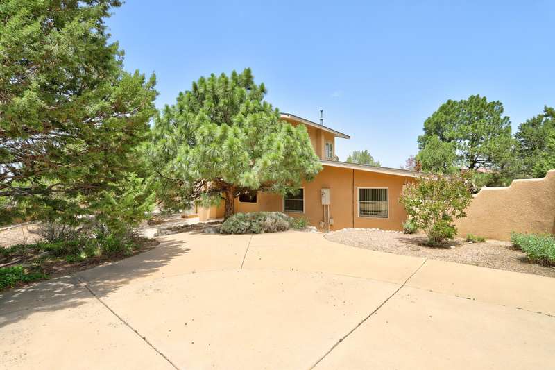 OPEN 6/21/25 1- 3 PM Sandia Heights Stunner! This home sits on just over an acre with mountain and city views. Flexible floor plan provides room for all with TWO large primary suites (one up and one down) each w large closets and remodeled bathrooms, two more generously sized bedrooms with double closets on the main level. Three living spaces offer room to relax or entertain. Huge kitchen with brand new tile and TONS of cabinet and counter space with a massive island, double WOLF ovens WOLF 5 burner cook top and a pot filler, stylish lighting and stone counter tops, & a sub zero fridge. There is room for an eat in kitchen plus space for a larger dining table. Detached casita includes a full bath and a wood burning fireplace. Superb location with highly rated schools
