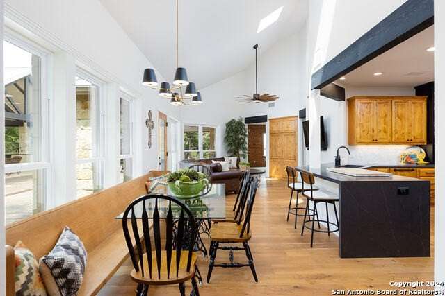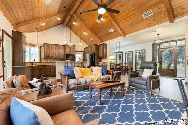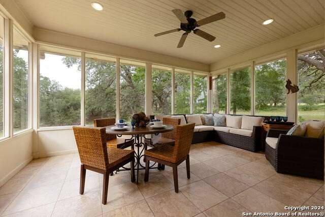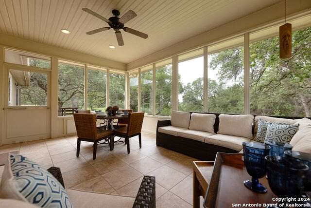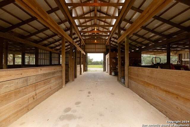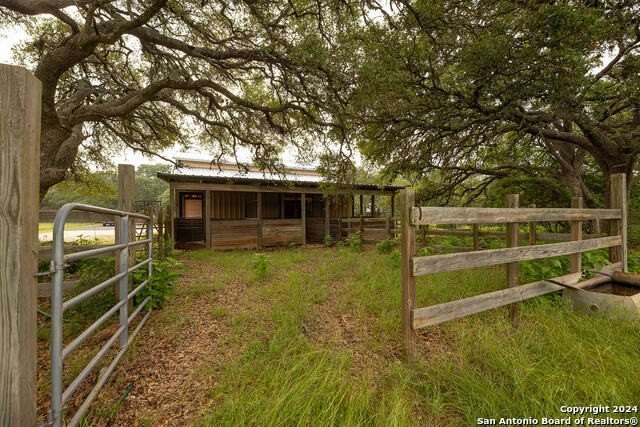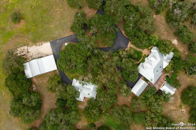 Main House 4017 SF; 4/3/1. Guest House 1703SF; 2/1 with sunroom. Barn 3280SF; workshop; equipment storage; equipped with electric and water; turnouts and access to fenced and cross fenced paddocks. Cabana with masonry fireplace, large granite countertop, and two mini fridges. 17.74 acres of private property with several majestic mature live oaks complementing wildlife exempted acreage. Intimate community with limited ownership makes for great privacy and convenience. The Historic Steel Ranch has the original Homestead and barn located nearby. Meticulously kept, conveniently located just minutes from downtown Boerne. As you enter the 4ft arched alder front door, you are greeted by a beautiful barrel vault foyer, open to a vaulted living room as well as lovely dining room and beautiful kitchen. Every surface in the home has been updated with built-in storage, pristine finishes and elaborate touches including all light fixtures throughout the entire home being adapted to LED. Tons of natural light complements this beautiful home, including wonderful skylights with tons of light flooding through these special spaces. Special game room with unique axis hide print carpeting and extra family living space right off the kitchen. Wide open floor plan with recently installed wide plank hickory flooring throughout as well as great dark beams complementing the ceilings. The wonderful potbelly wood-burning stove in the main living space is a warm touch in this open floor plan. Wine refrigerator and custom cabinetry built in. The oversize kitchen would be enjoyed by any culinary artist. A large island makes for a great workspace. The island quartzite countertop waterfalling on both ends is stunning. Recently updated stainless steel appliances, offering all electric and induction stoves, pot filler for convenient cooking. Stainless steel refrigerator will remain. Separate office space complete with tons of built-in custom cabinetry. Primary suite on the main floor with excessive space for sitting area, opens out onto a private deck with scenic views of wildlife. Recently updated, beautiful primary suite bathroom includes elaborate shower with double heads and standalone tub includes exquisite fixtures, double vanities with waterfall edge counters, coffee bar, and custom Zellige tile. New oversize closet with pull down third row rods, custom finishes, built-in jewelry cabinet. All guest bedrooms have beautiful walk-in closets and updated bathrooms. Upstairs, you are greeted by a grand bonus area that will serve wonderfully for entertainment, work out room or secondary family room or media. Two bedrooms with fabulous views off this space have wood floors, walk-in closets, and tons of storage. Outstanding outdoor living spaces, including Cabana with Masonry fireplace, large Granite countertop, includes two mini fridges that will remain. The perfectly private acreage includes a wonderful Koi Pond and wildlife exemption. Guesthouse with 2 bedrooms, features an open floor plan with hickory custom cabinets in the kitchen as well as flanking the living room fireplace. The sunroom off the living room and kitchen brings the outdoors in. Main House Special Features include: Equipped with Sono's sound system; Central vac system; Separate septic systems for main and guest house; Recently updated all metal roofing on all the buildings including the barn; Three new HVAC units in the main home; Blinds and covering throughout home with beautiful custom cased windows; Well, has 2000-gallon water storage; Recently replaced submersible and booster pumps; Oversized two car garage, painted floor, built-in cabinetry; Three-car carport; Guesthouse Special Features include: Laundry room off the closet; Central vac; Granite countertops; Vaulted tongue and groove ceiling in living room; Porcelain tile flooring; Carport, providing covered parking for your guests. Do not miss the amazing listing video located in the Virtual Tour section.