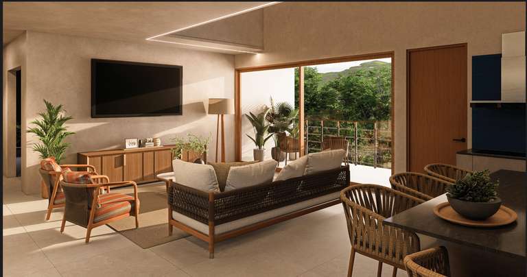 Elegant finishes blend natural textures with modern design, highlighting the beauty of Costa Rica's craftsmanship and materials. The home is being sold unfurnished, giving you the freedom to curate your own style and aesthetic. However, a fully furnished option is available for an additional cost, allowing for a move-in-ready experience. The kitchen comes complete with essential appliances and built-in furniture, all included in the sale price.