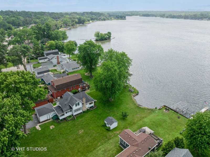 Rare 106 feet of water frontage on Wonder Lake complete with a pier, boat lift, AND beach area. Experience the beautiful sunset views and reflections of peaceful waters. Wonder Lake is an 840 acre private lake that is perfect for boating, swimming, sailing, water-skiing and fishing. The rustic 5 Bedroom home features solid wood paneling and ceiling fans in every room. With its classic charm and prime location, it's a unique opportunity to enjoy your dream Lakefront living. There is a Private park and beach down the street that is accessible only to the subdivision residents. The home needs some updating and being sold in As-Is condition.