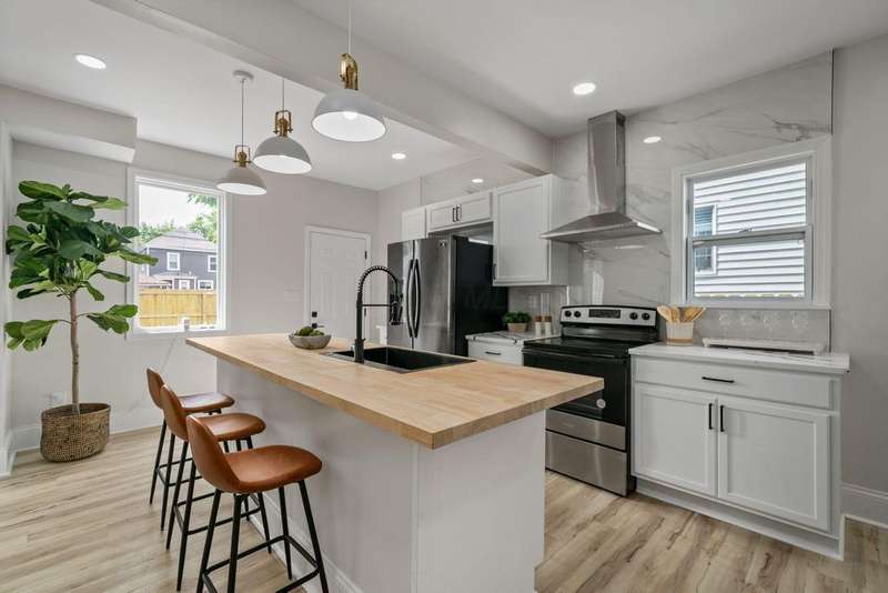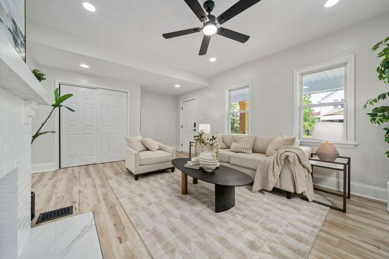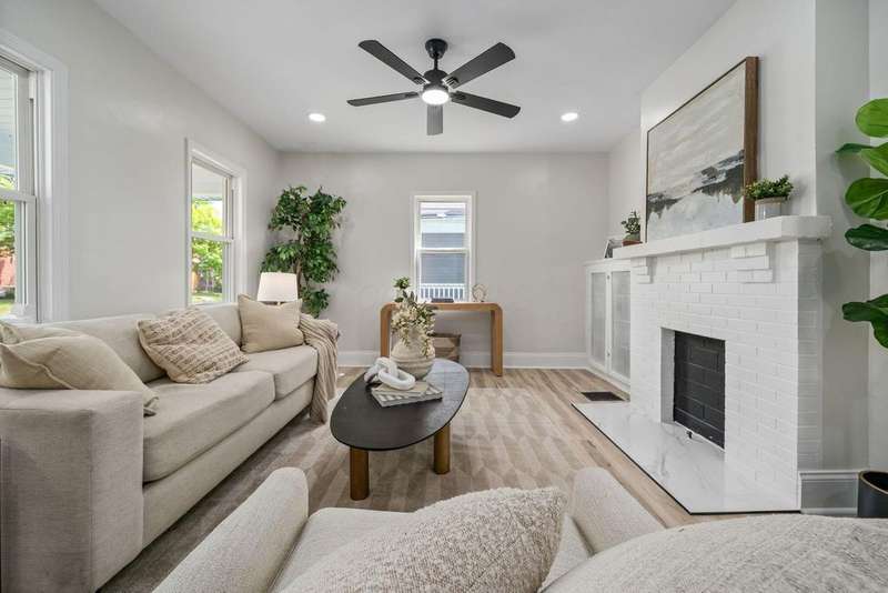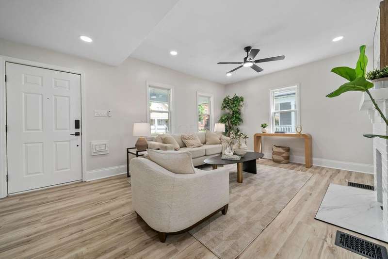 Priced to sell! From the moment you arrive, the vibrant blue exterior and cheerful yellow door set the tone for a space that's anything but ordinary - perfect for someone with a love for artistic style. Inside, you'll find a beautiful kitchen with quartz counters and oversized center island - it is massive! The decorative fireplace adds a cozy touch while the second floor laundry brings everyday convenience. Hard to find finished lower level provides flexible living space, ideal for a rec room, home office or play room. Fully fenced backyard complete with firepit will be great for outdoor fun and crisp summer nights. You'll find off street parking behind the fence with room for a future garage. This home is modernized, move-in ready and full of personality. Come see how style, function and a dash of color come together to create something truly special!