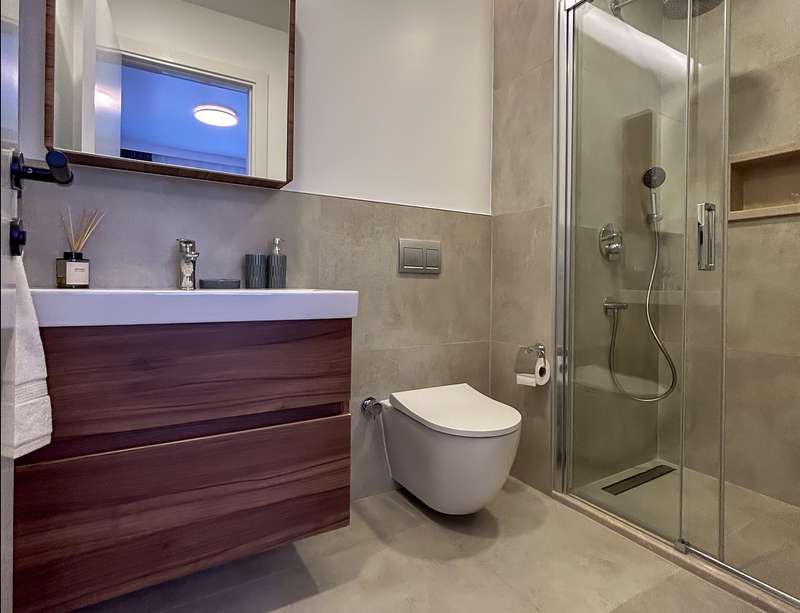 All materials used in the apartments are produced with the highest quality and workmanship. Air-conditioned heating and cooling system, wooden and ceramic flooring, aluminum joinery heat glazed window systems, high quality and decorative wall paints, lacquered kitchen cabinets and doors, high and decorative steel exterior doors.