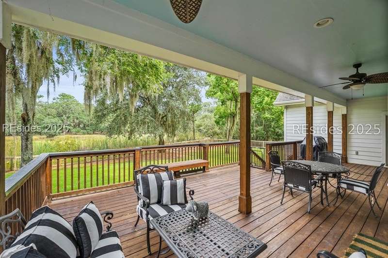Located on Cat Island, this custom 5-bedroom, 3.5-bath home sits on a spacious .72-acre lot with peaceful marsh views. Built in 2004, the two-story layout offers coastal charm and everyday comfort, featuring a welcoming front porch and elegant tiger wood floors throughout. The living room showcases a gas fireplace and wide marsh vista, while the kitchen is equipped with a gas range, breakfast bar, eat-in area, and separate formal dining room. The first-floor owners suite includes tray ceilings, generous closets, and a large private bath with a walk-in closet. Upstairs offers two additional bedrooms, a spacious media/game room, and walk-in attic storage. Outdoor living is enhanced by wide porches and tranquil views of lowcountry wildlife. Optional membership to Cat Island Club provides access to golf, pool, tennis, and dining. Just minutes from historic downtown Beaufort, shopping, and dining. Adjacent lot is also available privately.