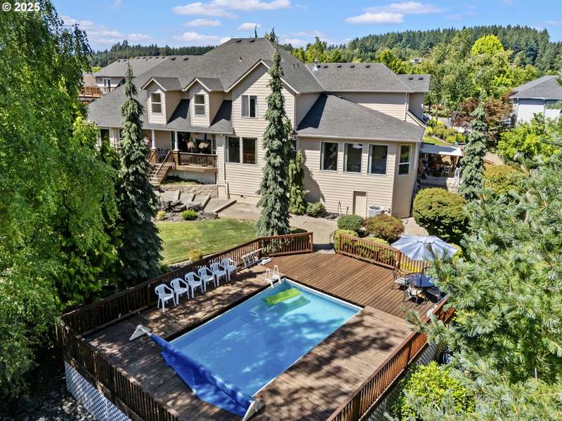 Priced well below tax assessed value means instant equity!! Welcome to this expansive 4,745 sqft Modern Traditional home, nestled in the heart of La Center an inviting, picturesque town known for its scenic beauty, downtown charm and unbeatable location. Surrounded by PNW lush greenery and just 25 miles from Portland, this home offers the perfect blend of serene country living and city convenience. Step inside to discover endless space and flexibility, perfect for multi-generational living, entertaining, or simply spreading out. The main-level primary suite features coved ceilings, cozy fireplace, jetted tub, dual sinks, makeup vanity, walk-in closet, and private water closet. Upstairs offers two bedrooms with a Jack-and-Jill bath, plus two additional rooms ideal as bedrooms, guest quarters, or a bonus space with another full bath. On the main level, enjoy formal dining with hardwood floors, a spacious kitchen with granite tile counters, cooktop island, pantry, eat-bar, and breakfast nook large enough to seat eight. Multiple living areas include a family room with fireplace, formal living room, den, workout room, and an additional flex space. Outside, your private retreat awaits perfect for entertaining with an in-ground pool, covered deck, gazebo, and garden space. While the home offers substantial square footage and a fantastic layout, some cosmetic updates and finishing touches will unlock its full potential and value. New hot water heater and newer dishwasher. Don't miss this rare opportunity to bring your vision and make this grand La Center residence your own! Half acre, FULL potential!