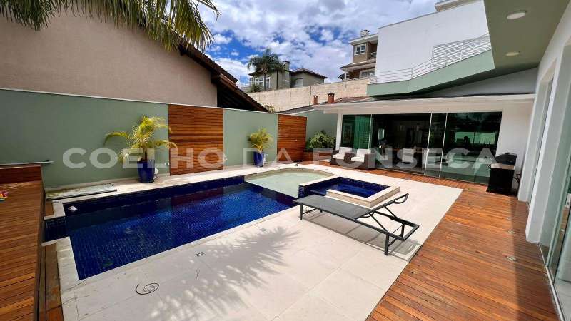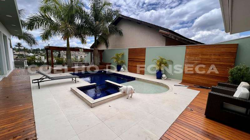 Casa em Condomínio no bairro Aldeia da Serra com 580m² área construída, 4 dormitório(s), 4 suíte(s), 4 vaga(s), 5 banheiro(s), piscina, escritório, ar condicionado, dep. de empregados, reformado (a), varanda.