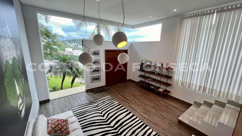 Casa de luxo no Condomínio Morada dos Lagos, com piscina, espaço gourmet, sala de jogos e 4 suítes amplas e confortáveis. Rodeada por verde e tranquilidade, distante apenas 40 minutos de São Paulo.