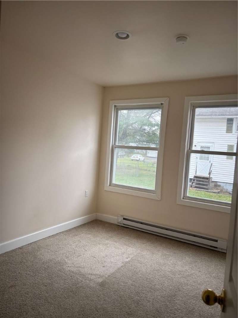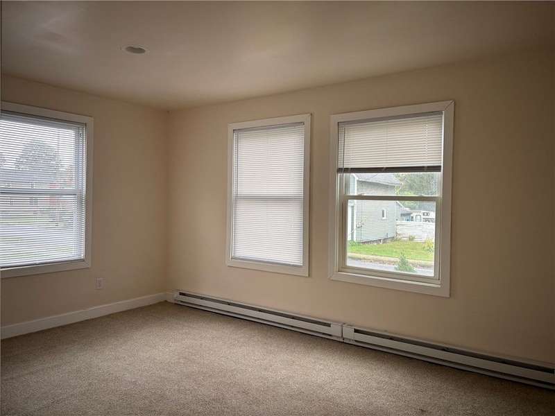 Recently Remodled, like new carpeting, updated bathroom and kitchen. RENT INCLUDES TRASH REMOVAL, SNOW REMOVAL, LAWN MOWING, HOT WATER, WATER & SEWER AND PROPANE FOR COOKING. About 5 steps up to the 1st floor apartment. Lots of natural window light in rooms, Step in shower, back yard for your enjoyment, and lots of parking spaces. Tenant pays for electric, internet, TV and phone. No smoking in Building. Pets will be considered. Coin operated laundry in basement.