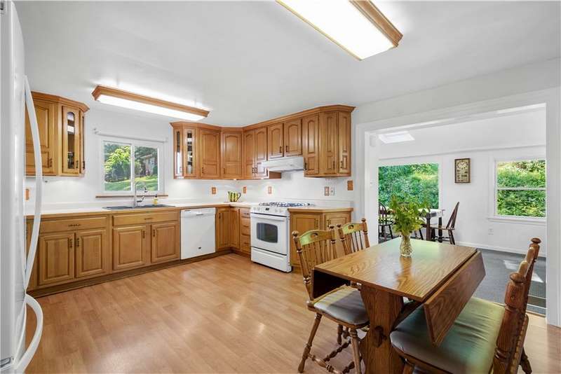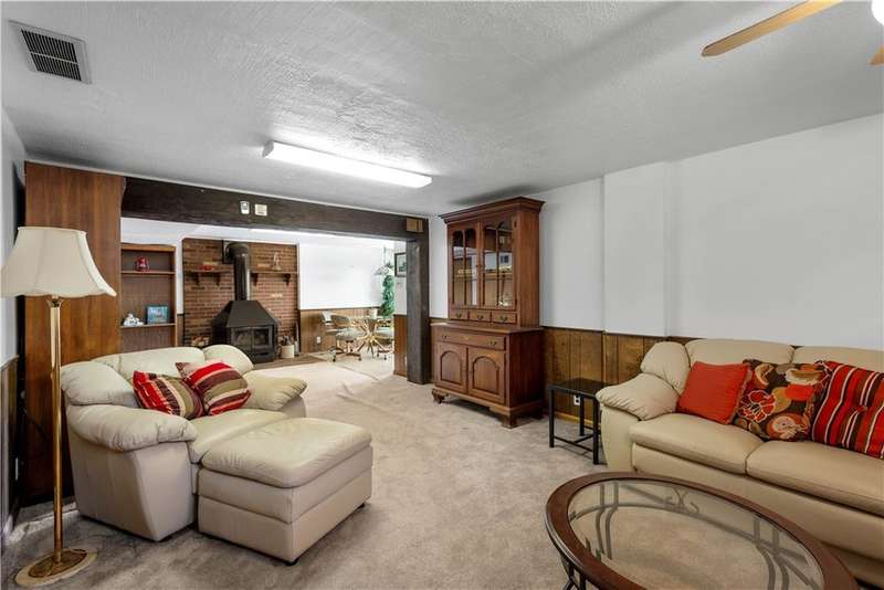 A charming covered front porch invites you into this delightful brick ranch, filled with warmth and character. The main level features beautiful hardwood floors and a spacious, renovated kitchen that is perfect for both everyday living and entertaining guests. A bright family room addition at the rear of the home expands the main floor, offering the ideal space to relax or gather with friends and family. Two comfortable bedrooms and a full bath complete this level. The fully finished lower level adds even more living space, highlighted by a cozy wood-burning stove and convenient walkout access to a stunning paver patio which is perfect for outdoor entertaining or quiet evenings. Ideally located near local schools, and the shops and restaurants in Coraopolis, this move-in-ready home offers the perfect blend of comfort, updates, and convenience.